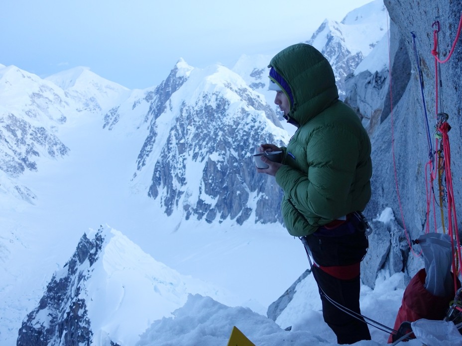 The Feathered Friends Hooded Helios is best used as a climbing belay parka or as a light parka for other fast and light backcountry activities.