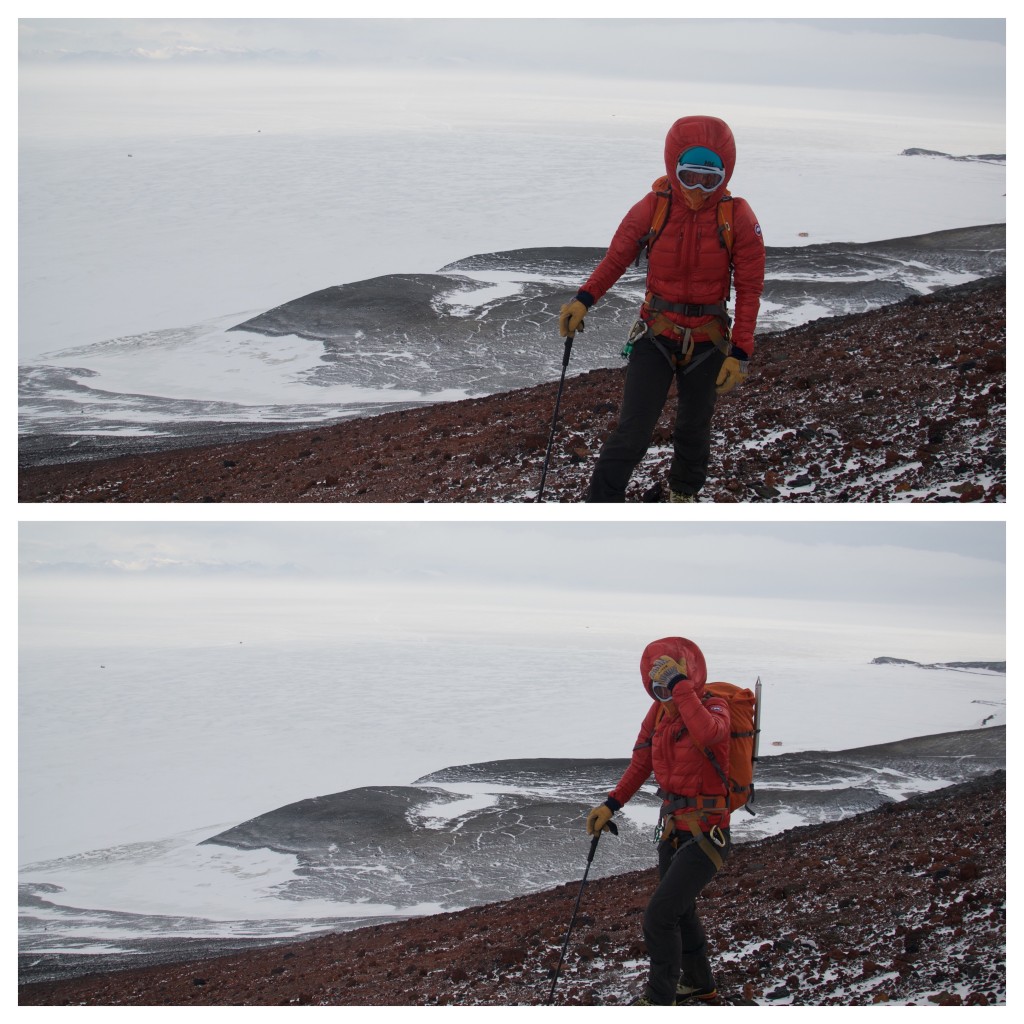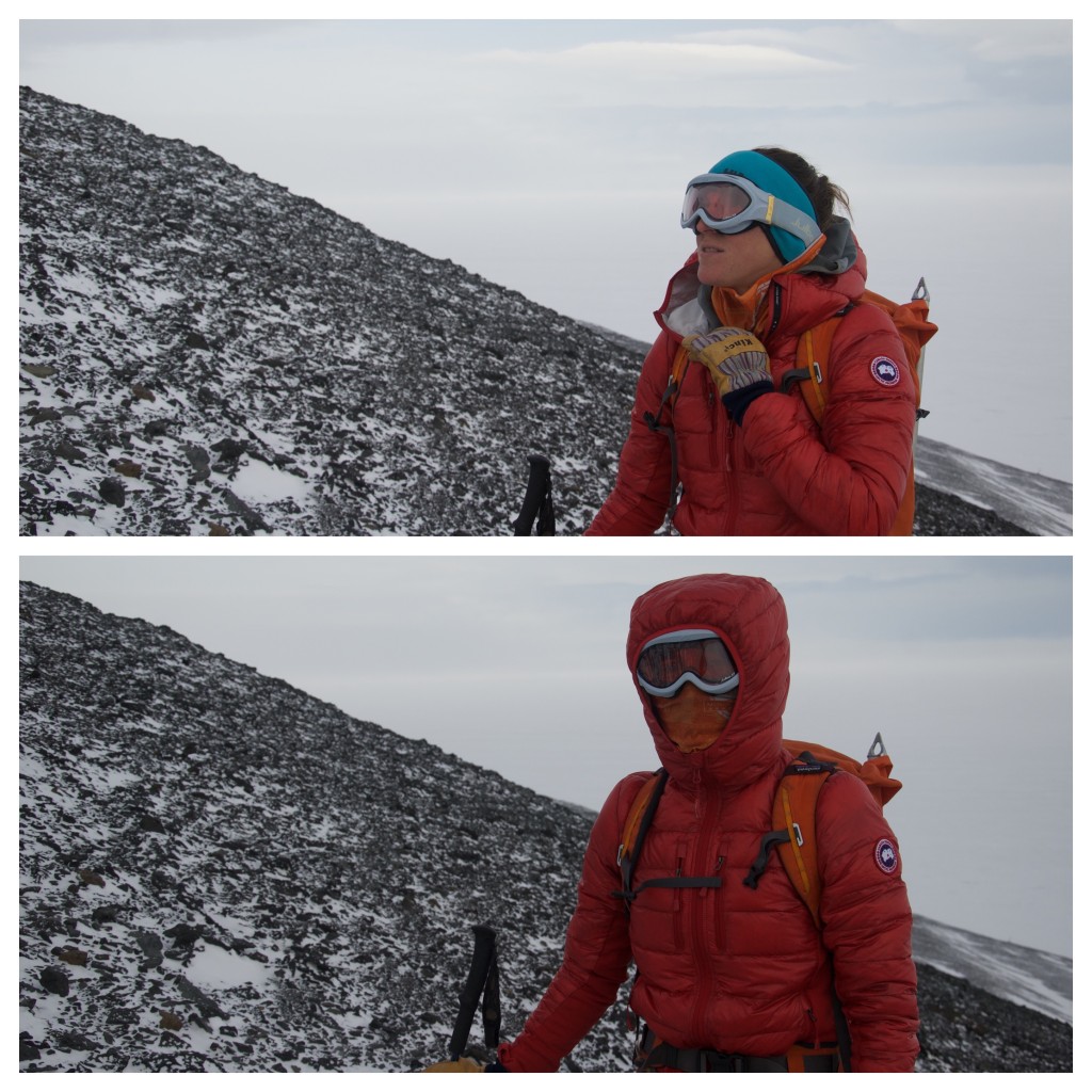 The hood was so big that there was still too much room while wearing a climbing helmet. Without adjustable cords or velcro to tighten the hood in key areas, even the slightest breeze would inflate the hood around our ears, channeling the cold air to our ears, with the stronger gusts chilling us as far as our shoulders and upper back.