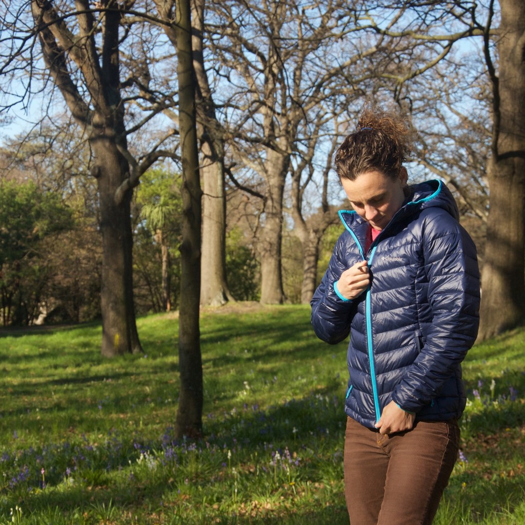 Columbia touts its mixture of 60 grams of Omni-Heat synthetic insulation and 800 fill goose down as “performance-enhanced down” which provides “ultimate lightweight warmth and heat retention, even when wet.” The water-resistant shell fabric never gave us opportunity truly to experience the insulating capabilities of their hybrid down when wet--and we imagine lest we wear this jacket in a torrential downpour without a rain jacket over it, it is a feature we are not likely ever to utilize. In reality, combining down and synthetic insulation just makes the jacket heavier and less compressible than other down jackets.