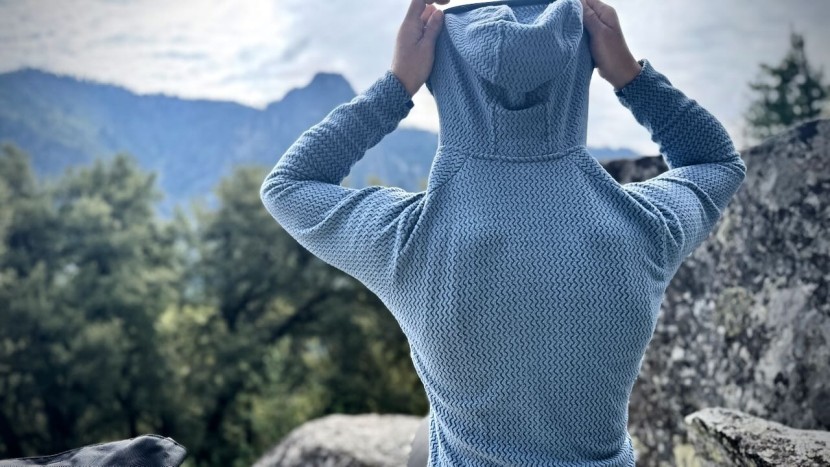 A fitted, scuba-style hood that features a very high chin (to keep your face even warmer) stays up in the wind and layers nicely under shell hoods. Our longest-armed tester found the R1 Air sleeves to be long enough, and even during activities that necessitate excessive reaching overhead, like rock climbing, our wrists remained covered. While we wish the R1 Air had thumb loops, the extra length of the latest iteration kept our hands warmer than before. It is worth mentioning that this fleece isn't designed for standalone warmth. Its zig-zag patterning allows more air to permeate the fabric, wicking sweat away from your body and releasing it through the patterning. By keeping your body dry, you retain more body heat while working up a sweat in cold weather.