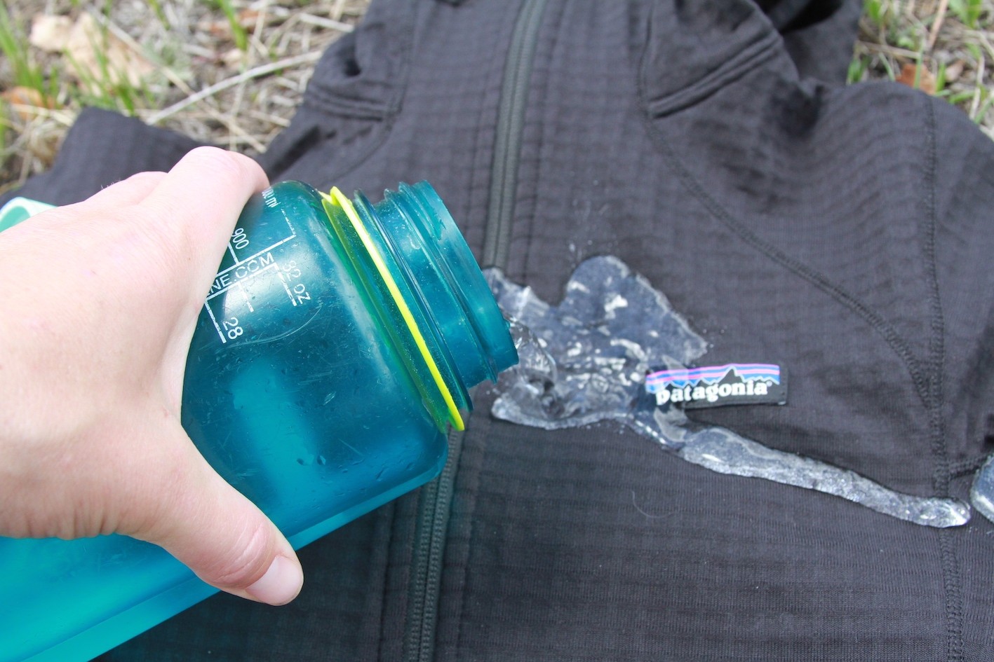 Sporting a grid-like brick fleece pattern, this jacket has a lot of little holes that provide amazing breathability. That said, when it comes to dumping rain or snow, we have to recommend a lightweight shell that you can layer on over. In our water tests, after about two seconds under a tap, the water began to percolate into the fabric, soaking it thoroughly. When on, we noticed that a small drizzle or some light snow (with a layer underneath) wasn't a huge deal. The upper fabric absorbs the bulk of the moisture while the polyester fleece retains warmth when wet.