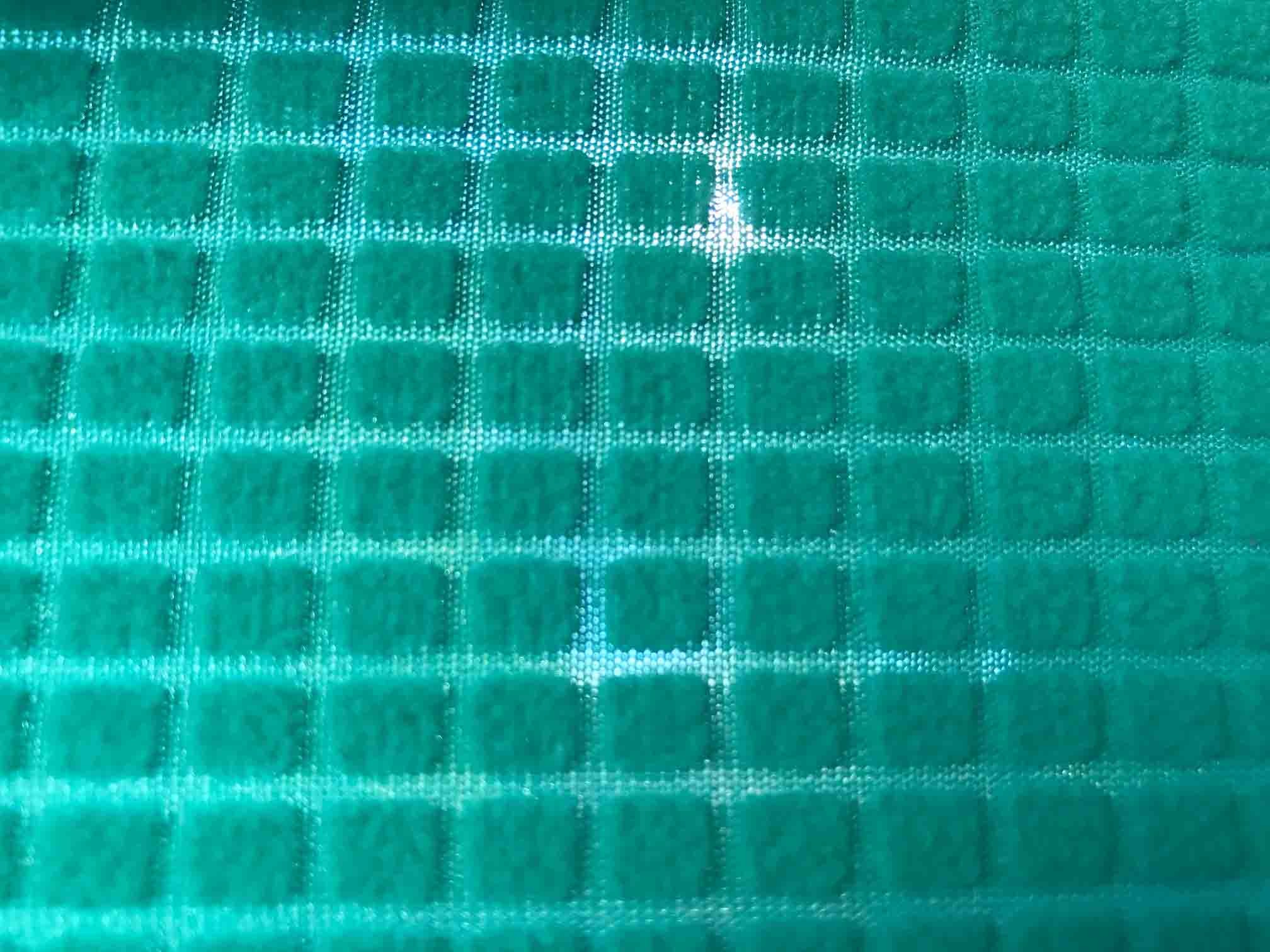 The channels between the blocks of fleece are so thin as to be almost see through. This allows warm air to vent through the fabric, keeping you drier even when being active. Credit: Cam McKenzie Ring