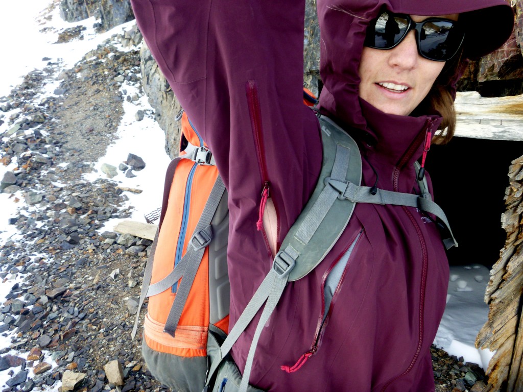 As a result of the rigid polymers used in the Gore-Tex Pro jackets, this shell (like the Beta AR and Alpha SV) is a lot louder than the Outdoor Research Clairvoyant. However, this fabric's mobility is a trade-off for excellent weather protection. The Arc'teryx Theta AR does boast lots of room in the arms and torso for layering, which adds a certain level of mobility. Plus, it has an anatomical design specifically for women and has very little lift when putting our hands up in the air. Also - one of the best features is its super long cut. It covers your bum and provides more coverage with its athletic fit.