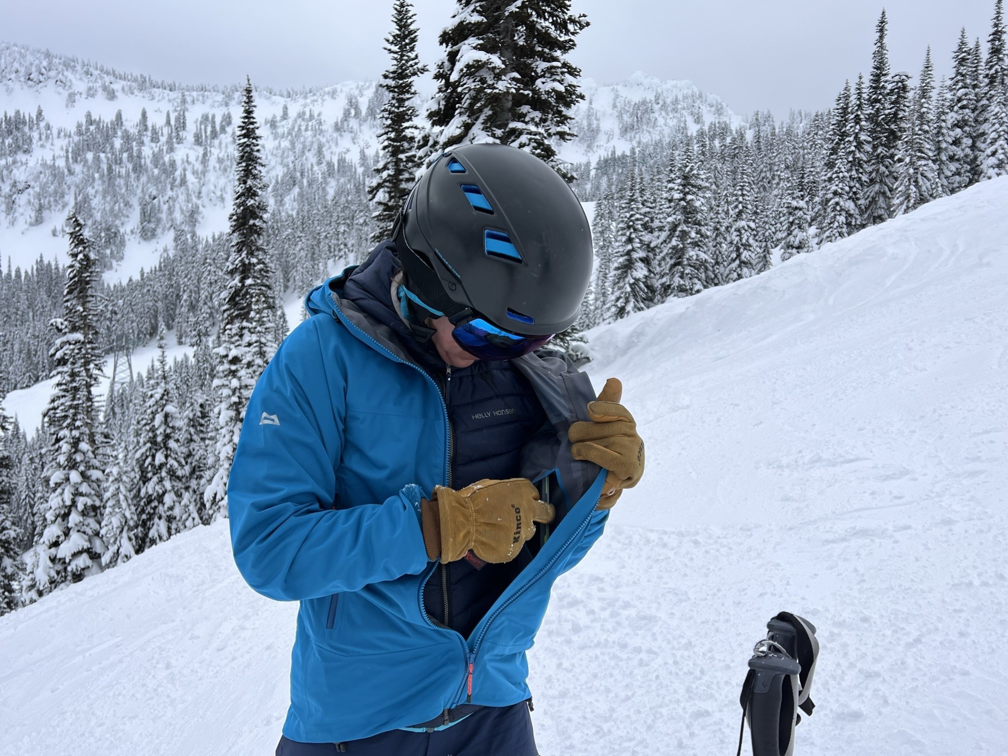 The hood provided some trouble for us. It is spacious and accommodates a helmet easily, but the stiff brim was so large that it felt too heavy and floppy and was very uncomfortable when we were not wearing it and had it draped behind our neck. It would restrict our head movements often. Additionally, there is quite a lot of texture on the hood between the cinches being external and exposed to snow and ice buildup, and the cinch around the crown of the head also being exposed and forming a circular seam around the head. We prefer smooth face fabric textures to reduce the amount of nooks and crannies in which snow and ice can build up.