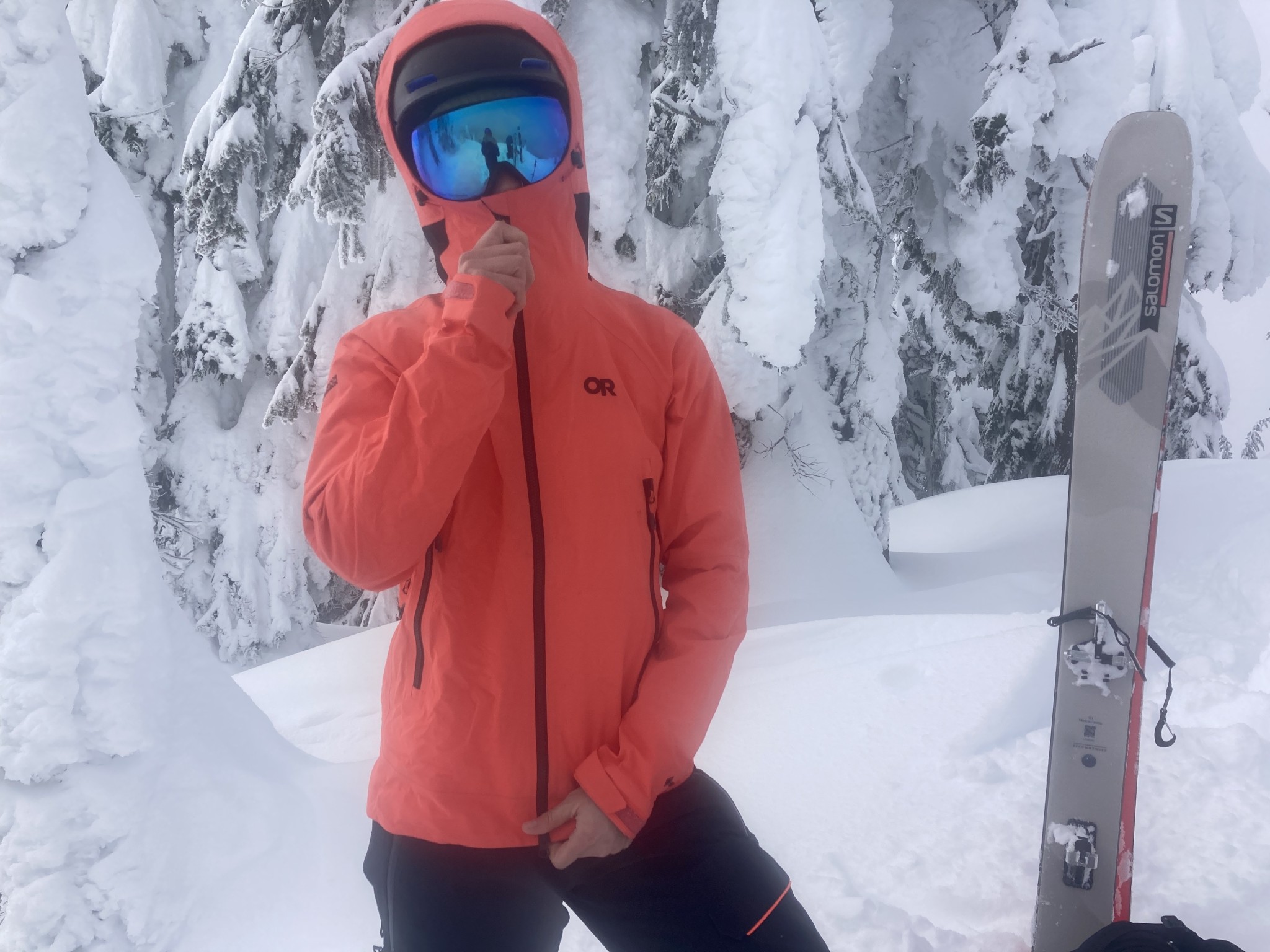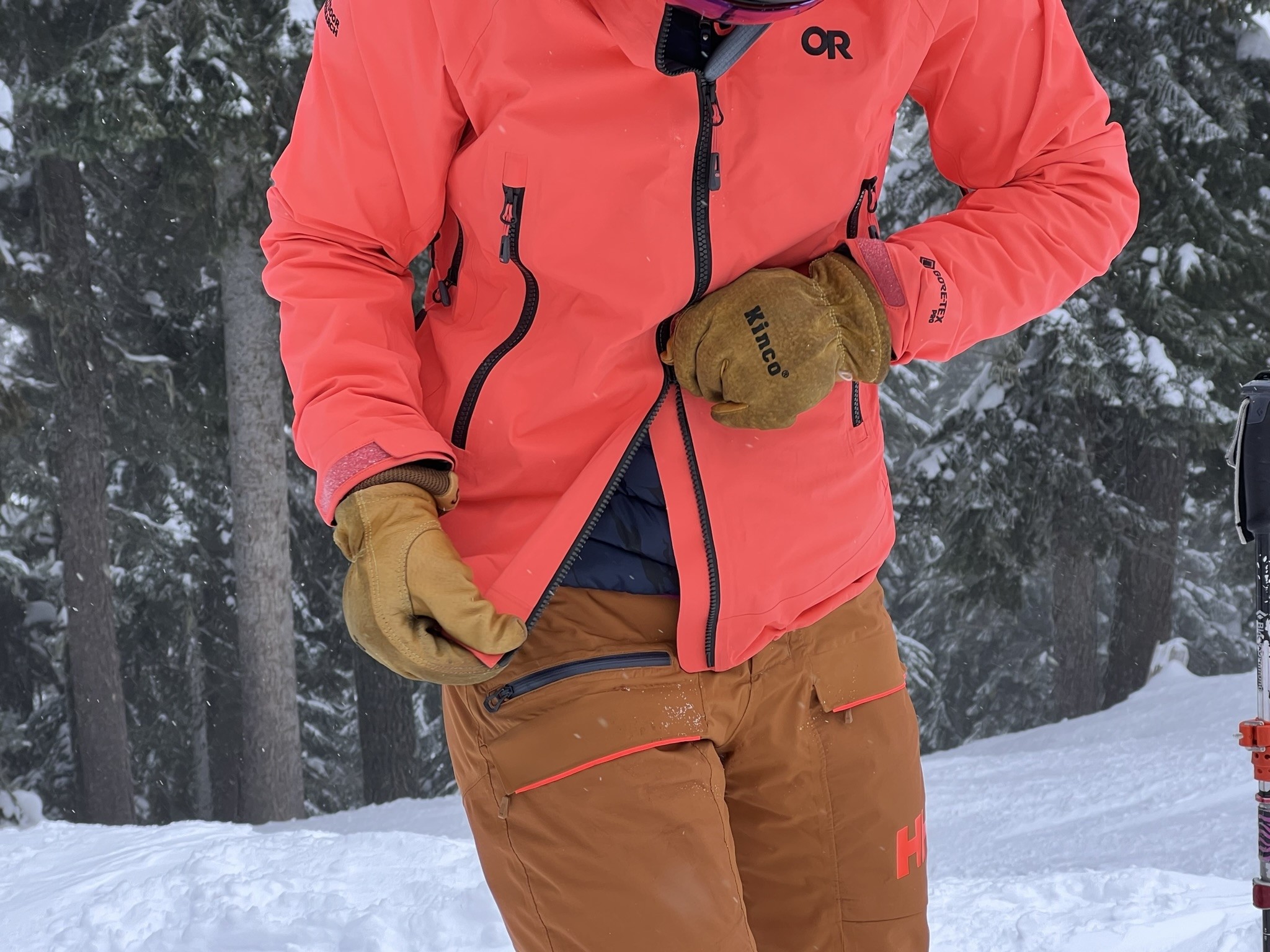 The OR Archangel is one of the heavier jackets we tested and is designed to provide a bit more coverage with a longer back length and generous hood, making it feel more like an expedition hardshell model.