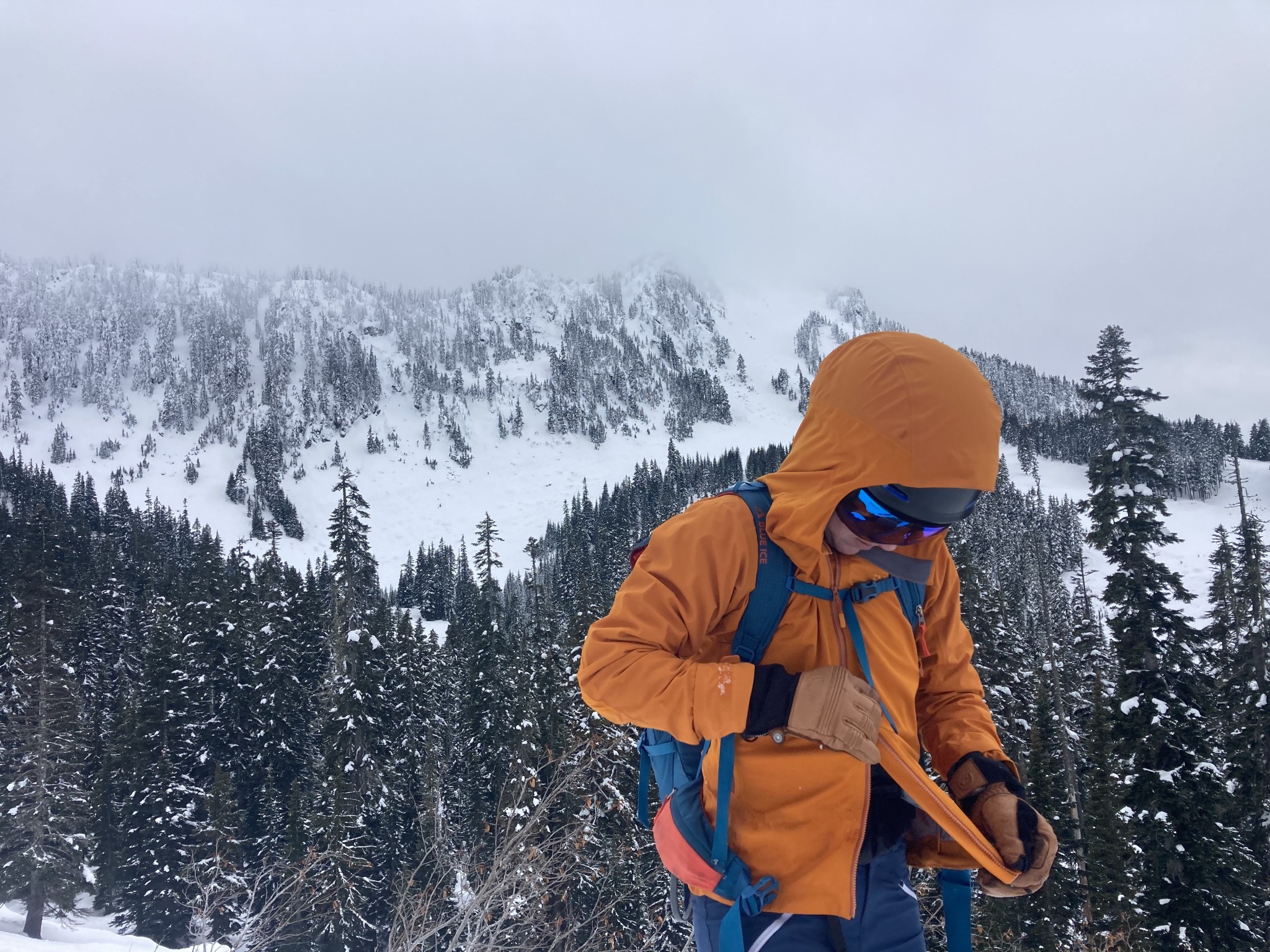 When we got our hands on this coveted jacket, we were both excited and apprehensive–and somewhat doubtful that it would live up to its claims. It feels soft and supple, which is not what we expect a burly hardshell to feel like. We decided to take it out on a big backcountry ski day with one of the worst weather forecasts of the season in the Pacific Northwest–which is saying a lot given the reputation winters have in the Cascades. We were skeptical enough that we packed a backup hardshell. In this corner of the world, it is not uncommon to carry two hardshell jackets when the weather gets rough.