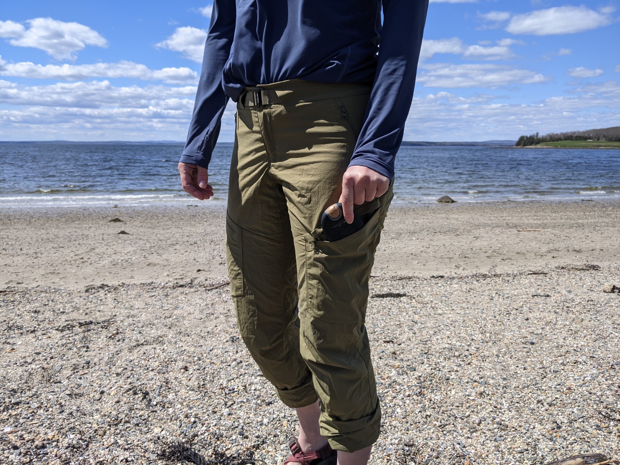 The integrated belt helps keep the pants snug if your weight fluctuates on a longer hiking or backpacking trip. But when we had smaller testers try these pants, and they had to snug the waist down significantly, too much fabric bunched in the front. You may need to be more careful with your size selection as a result.