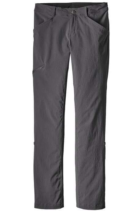 But The Patagonia Quandary is made with 94% nylon (62% recycled) and 6% spandex. It has a DWR finish and has a 50+ UPF rating for sun protection. The Quandary comes in Short and Regular inseams (but not Long) and sizes 0-14. We did find that they fit true to size. But, the material stretches out a lot during the day, so even if they are tight on you to start, they won't stay that way for long.