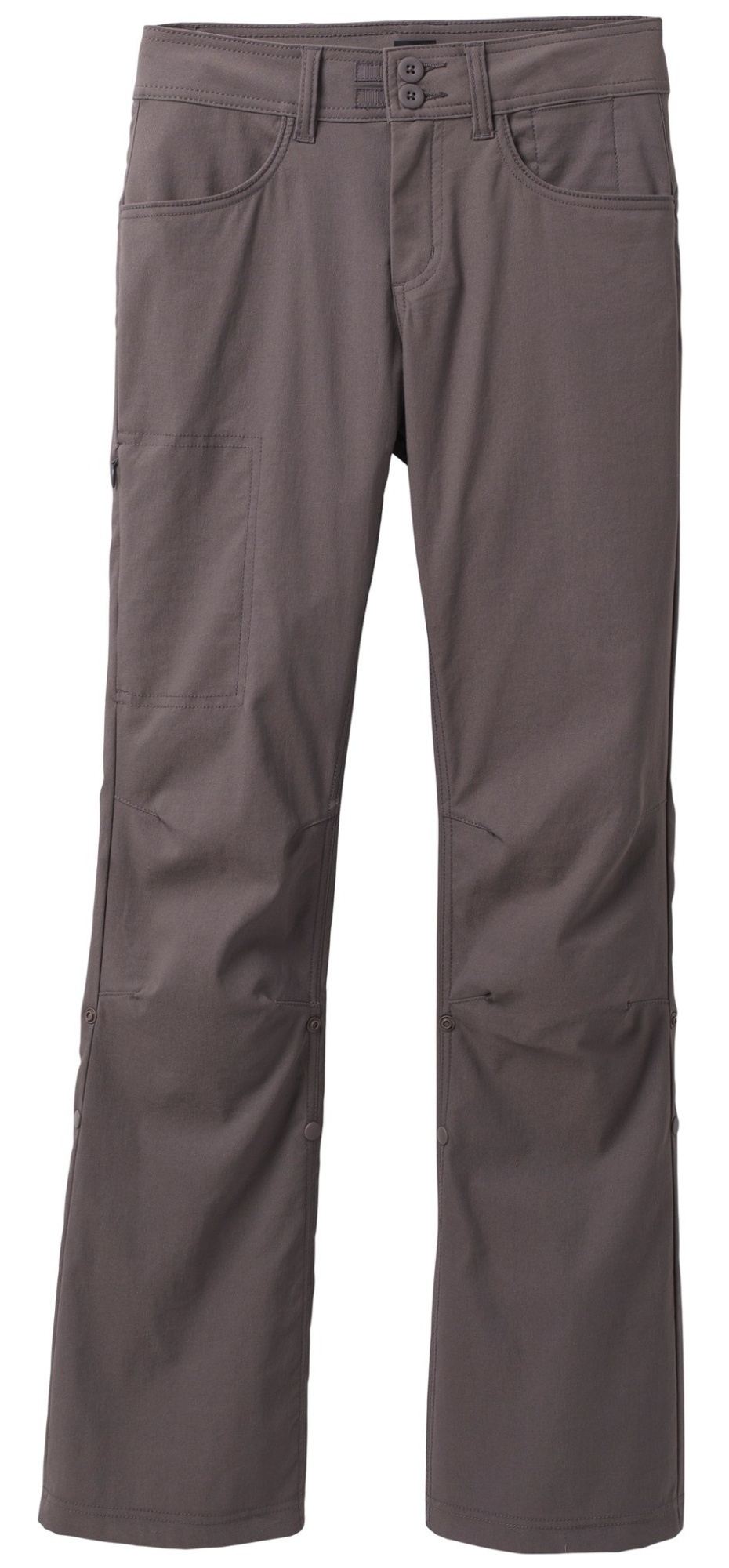 Prana reinforced the waist closure buttons with a ribbon of webbing. We often lost buttons on the original version and don't anticipate having the same problem with these.