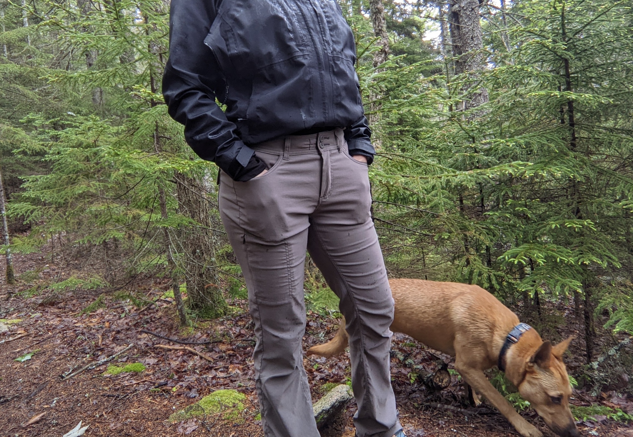 The Halle pants use a DWR coating, which lets water droplets bead and roll off. It worked wonderfully to keep us dry during light rainstorms and mists during our testing period.