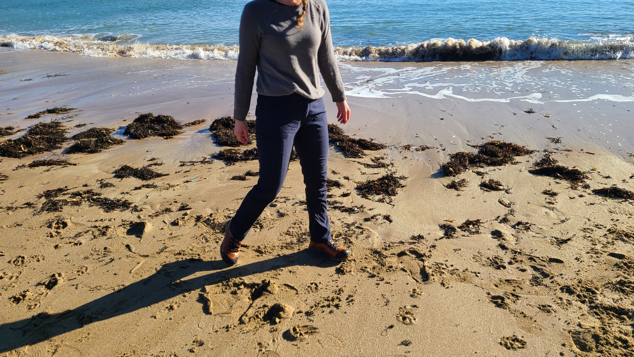 The mid-waist rise keeps the pants in place and is just about perfect for hiking, shorter backpacking trips, or day-to-day wear. The thigh-to-waist ratio works well for even our curvy lead testers – the waist hugs and the thighs skim. A gusseted crotch gives you more room to move.