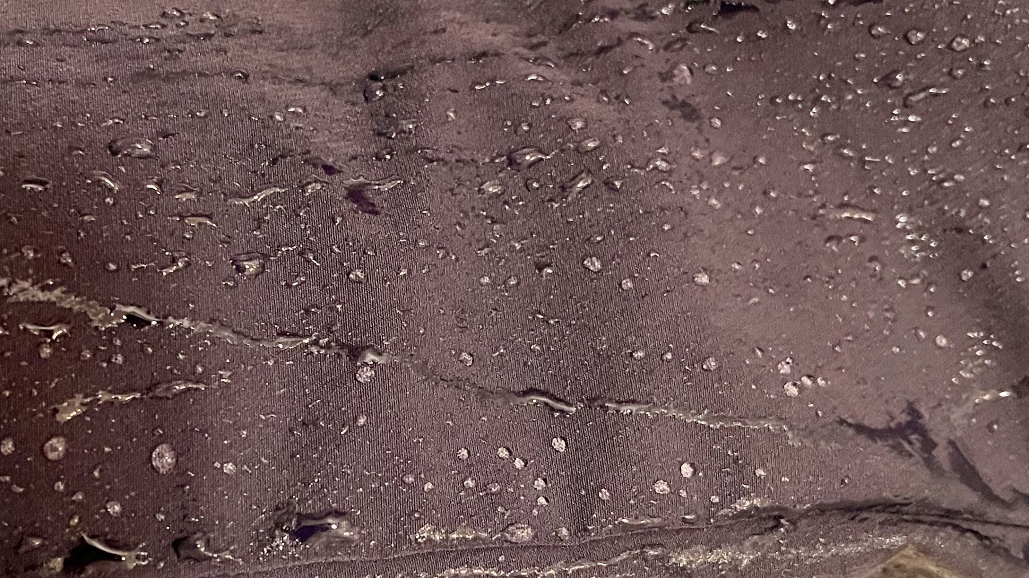 When walking in sprinkling rain, we were able to walk for about 40 minutes before we noticed any sort of seepage. But when we were in the pouring rain, it took about 20 seconds to feel some wetness against our skin.