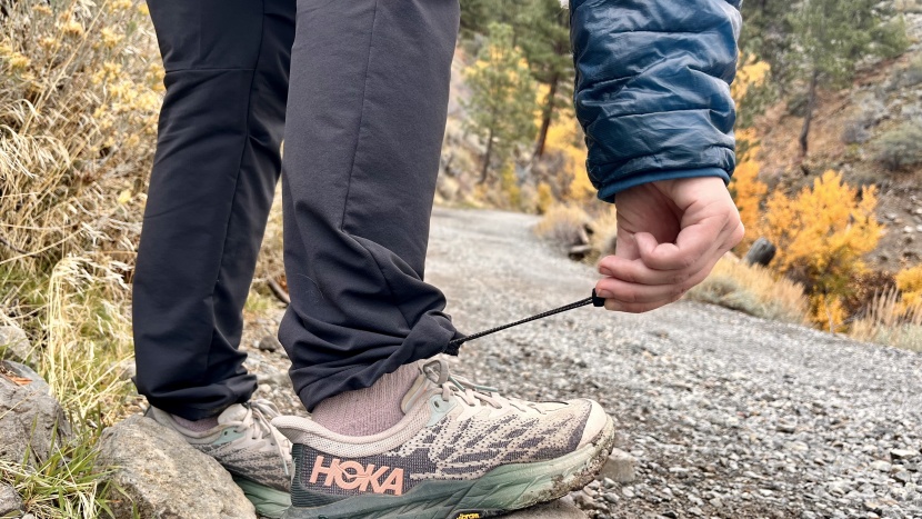 These pants are built specifically for blocking the wind, so they aren't the most breathable, and they don't come with a ton of venting features. But, they have a low-profile, built-in cinch cord that allows us to adjust the hem to our preferences. So, if you want to let in more airflow, you can. But, it's not much.