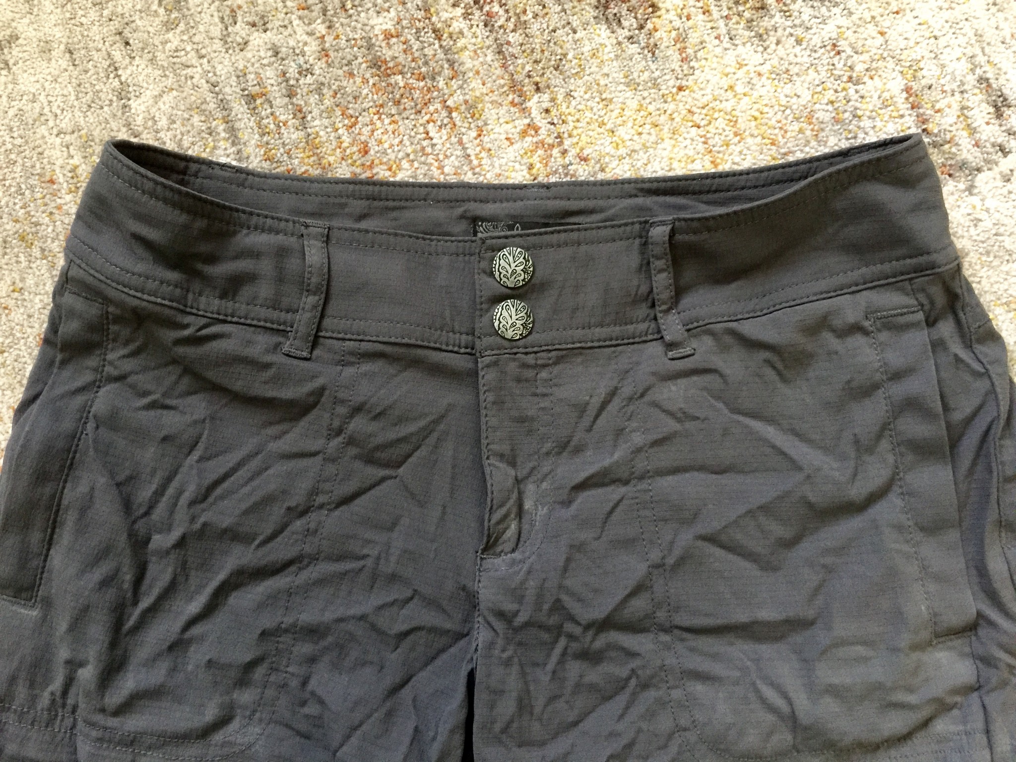 The Revenna is made mostly out of nylon with a touch of spandex, labeled as ripstop by the manufacturer. They have four standard but deep pockets, all mesh-lined. The front, right pocket has a zipper for added security. In addition to the two metal snaps and zipper combination for waist closure, they also have an internal drawstring (which we found ourselves never using, actually). The inseam is 7 inches, and the waist is mid-rise.