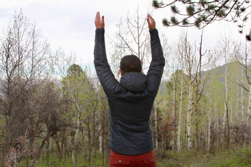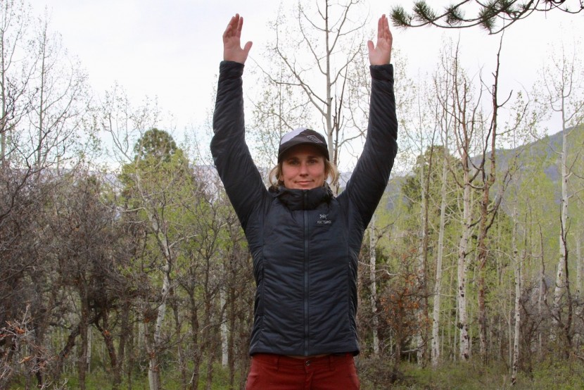 We tried wearing this jacket on winter trail runs and hiking adventures in warmer weather. While we could keep it on, with it fully zipped down while hiking, we still got pretty sweaty in our lower layers. While running, we lasted about five minutes before we had to pull it off. The continuous fabric underneath sticks to the skin when wet, like any jacket with a continuous shell construction.