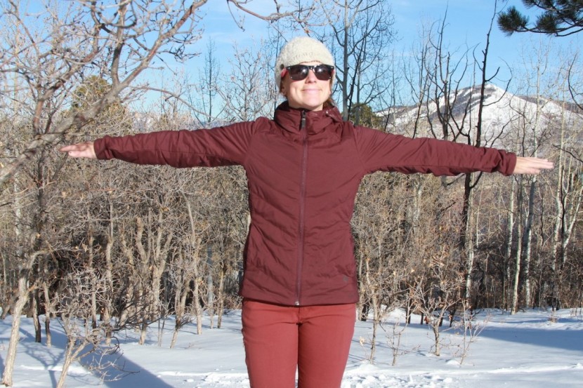 We often chose it on camping trips where the mornings presented shiver-worthy conditions. Its thicker design keeps the heat in, as does the cozy hood, large hand-warming pockets, and adjustable hemline. We wore this jacket when it was super cold as our outermost layer with a fleece and base layer layered underneath. We also wore it on warmer days with just a t-shirt. If you need a little extra warmth, put it under a looser shell to add even more warmth to your cold-weather arsenal.
