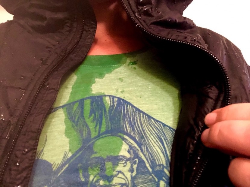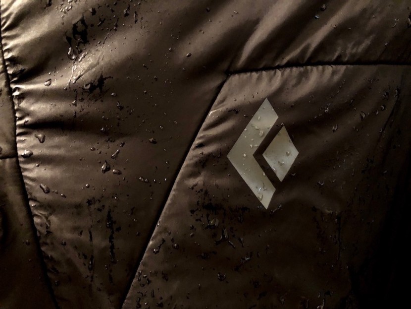 The outer shell is constructed of a nylon weave material that is measured at a 40-denier density; this means that the fabric is robust, yet flexible. The DWR treatment does a decent job wicking away water in light rainstorms. However, if met with a downpour, as we simulated in our at-home shower tests, the fabric will saturate after about five minutes in the downpour.