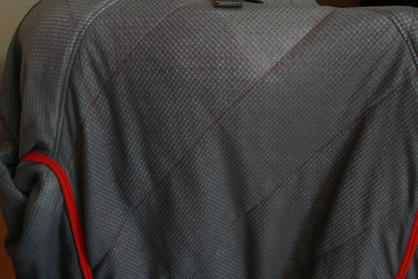 The construction is quite plain in its design with subtle features that add to its flattery. While the back of the jacket features a wide stitching pattern, that creates a wide diagonal pattern that commences at a flattering seam, offering a trim, yet, simple look. The sides of the jacket, throughout the arms, and down to the hips have a strip of non-pattern, while the front features a wide diagonal stitching pattern that changes direction at the breast. The two-toned coloring from the interior to the exterior of the jacket offers nice contrasts that make this jacket look high-quality and well-crafted.