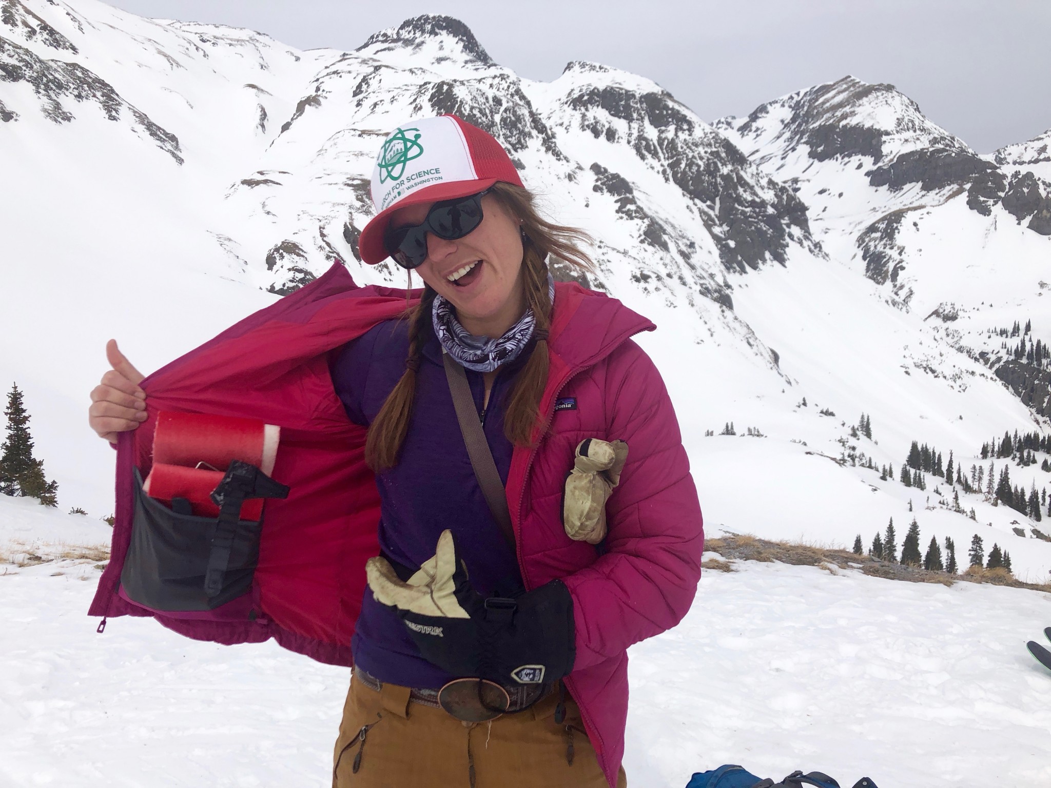 Enjoying the Hyper Puff while on a backcountry splitboarding tour in the San Juan Mountains. While this jacket isn't the best for uphill travel, it certainly does a great job on the downhill! Credit: Derek Stoddart