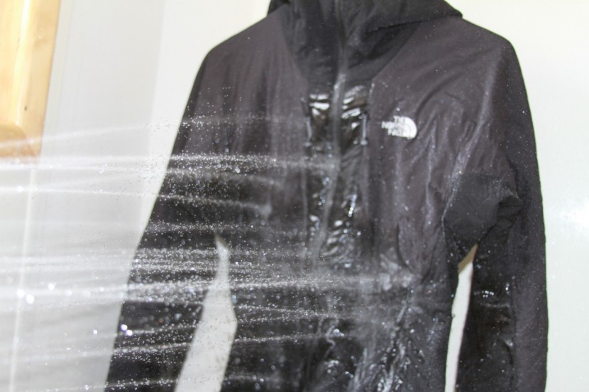 In snow, the materials did a good job simply beading up on the fabric. Over time though, the fabric did this less, so it's important to treat this jacket to retain that DWR finishes as it wears out with cleaning and use. In our shower tests, where we wore each under a stream of water for two minutes, the water didn't penetrate through to the inner fabrics of the jacket. The water beaded for about 40 seconds before saturating. The material then absorbed and held water in “pockets” between the inner and outer layers, similar to many other soft-shelled jackets.