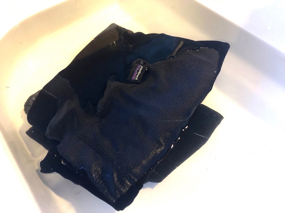 During our in-lab tests, we made some interesting observations. When we placed water on the surface without too much agitation, the fabric immediately absorbed the liquid. This leads to the idea that the polyester fibers are absorptive, and much more so than merino wool. When dunking it under water, it absorbed the least amount relative to others. This is because there is little material to hold water. In our drying tests, it proved to dry out at the same rate as most every other product in the review. In the field though, it's a top performer for breathability and shows an affinity to dry quickly. As a result, it earns a Top Pick for Aerobic Endeavours.