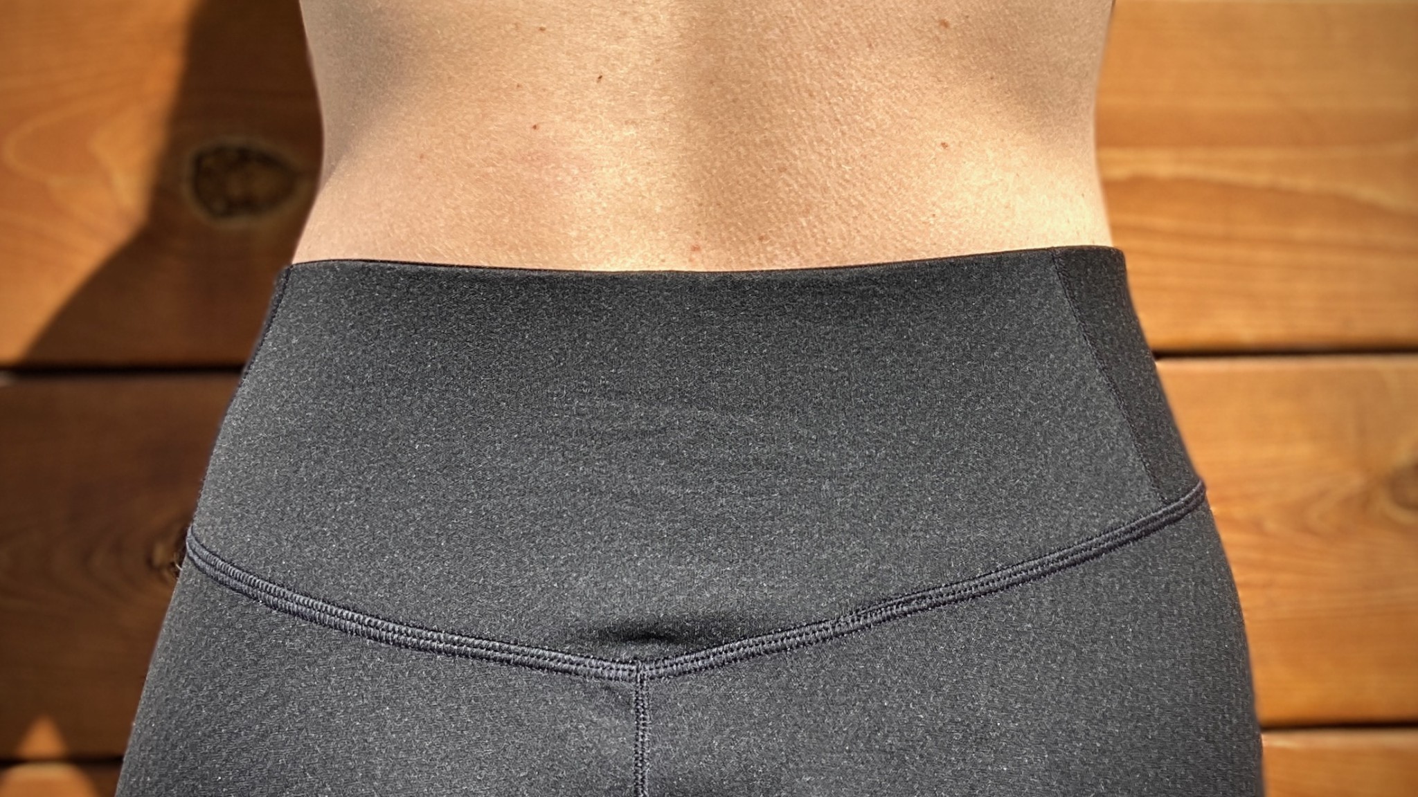 The soft waistband is not too tight or too loose, measuring about 4" at its widest, and is similar to the fit of a modern yoga pant. There is also a smaller elastic waistband that is sewn inside, measuring about 1.5 inches. The inner waistband is the one that actually holds these bottoms in place, and this design increases comfort and layering ability. While backcountry skiing or trail running, this waistband stays put, but when stretching or doing yoga, the thinner elastic waistband tends to roll and requires some adjustment. While not as comfortable as a Merino wool fabric or other synthetic designs that are less rigid and feature even more stretch, polyester has its advantages without sacrificing too much comfort.