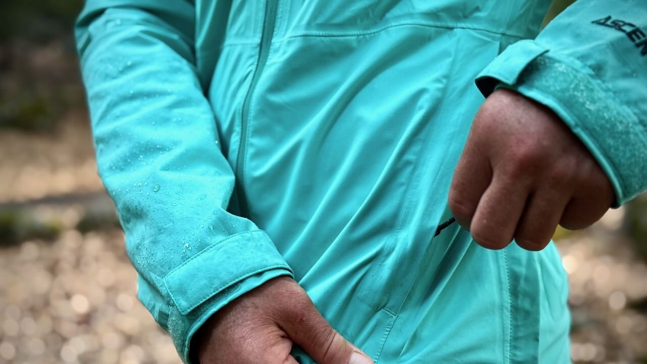 The AscentShell Dry 3-layer fabric combines with a factory-applied Nikwax Direct.Dry treatment that is fully seam-taped. It's more malleable than standard rain jacket material, finding a happy medium between a stiff raincoat and a flexible wind layer. Throughout the testing, it held up well, our team only noting cosmetic stains on the lighter fabric.