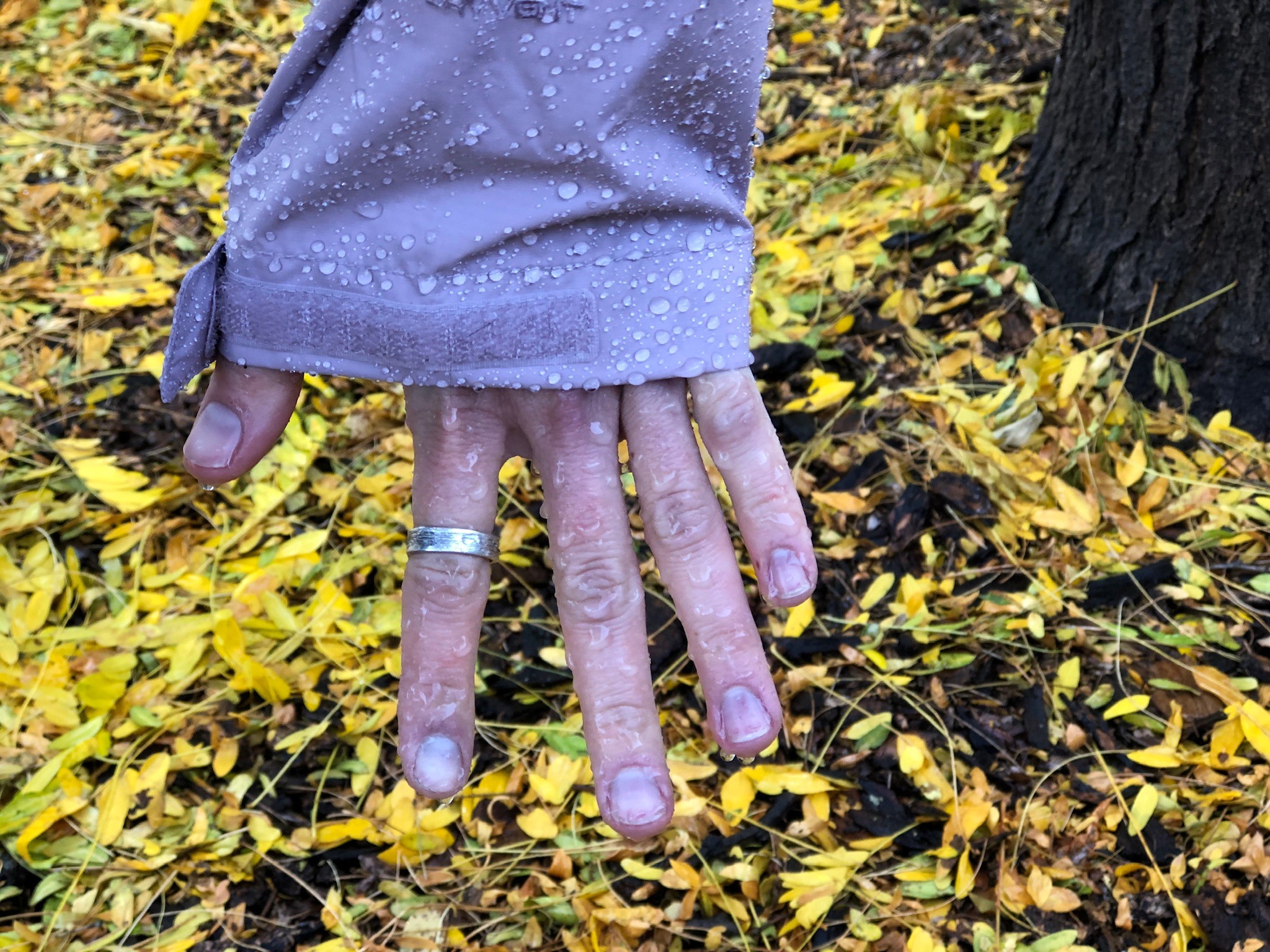 The Venture let us down when it comes to water resistance. At the first start of rain, beads form on the outside of the jacket and roll right off. And if you're only ever experiencing light rain, that might be the end of the story. When we put this jacket through our “puddle of water” test, some water seeped right through, leaving a sort of condensation-like feeling on the inside. This is unlikely to be a huge issue unless you're out in a downpour for a significant length of time, but it doesn't give us a huge amount of trust in this little jacket. We also aren't huge fans of the hood, which is oddly small and has no brim and freely allows rain to hit your face. The double storm flaps on the main zipper do a good job of keeping rain from coming through the teeth, and as long as we kept the pockets closed, we didn't notice any leakage there.