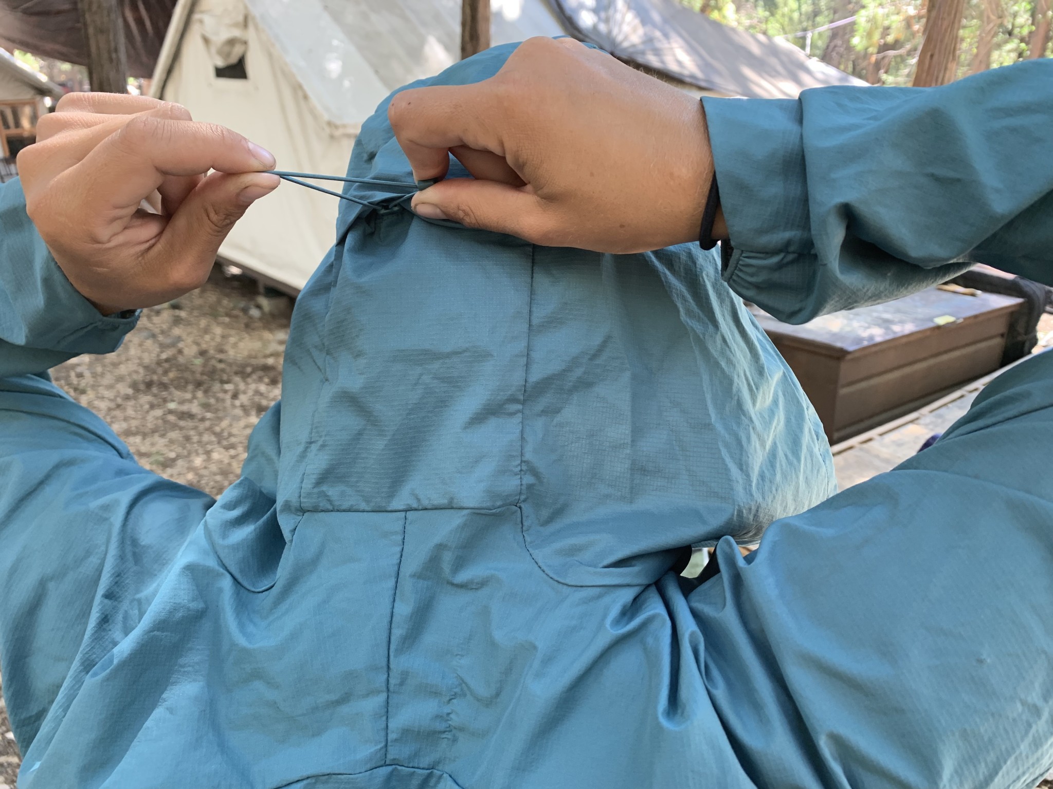 The Houdini Air is a very comfortable layer with a soft fabric that feels great next to the skin. We found that the material wasn't quite as luxurious as some of the other jackets we tested, but it is definitely above average. The fit is great as well: long enough to keep you covered even when raising the arms and loose enough to layer over insulating pieces. The material has a small amount of stretch that helps make this jacket more versatile. We also love the stretchy wrist openings which allow the sleeves to be pushed up for more air and stay there. Some of our team found the hood to be a little too big, but it does adjust via an elastic pull-cord on the back.
