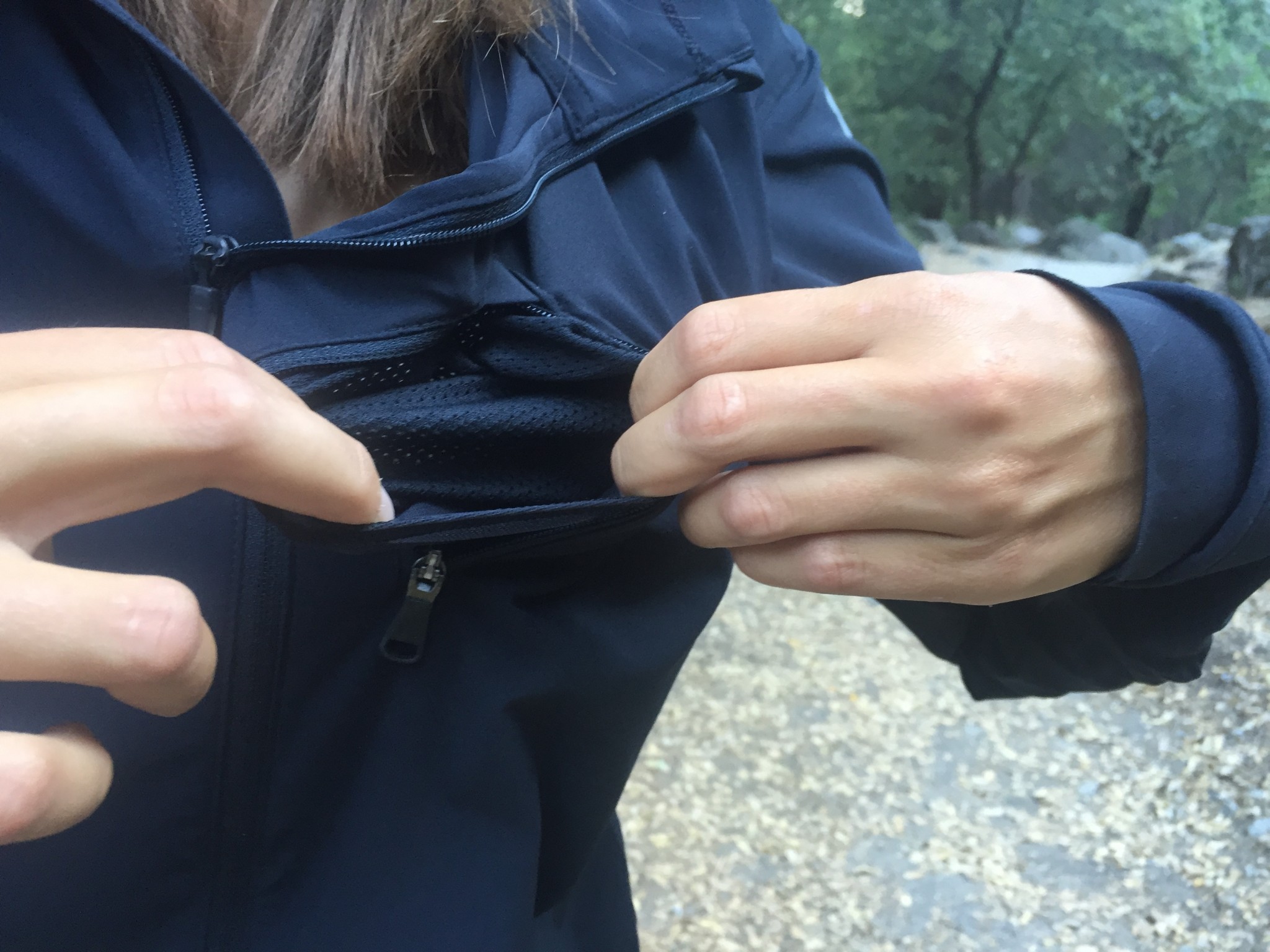 The Outrun does have thumb loops, which are great for both comfort and warmth, but we found them to be less comfortable than those of the Gaea. This jacket has two front zippered pockets and a chest pocket. We liked having these options and appreciate the chest pocket for reducing bounce. We only wish we could pack this jacket away into the chest pocket.