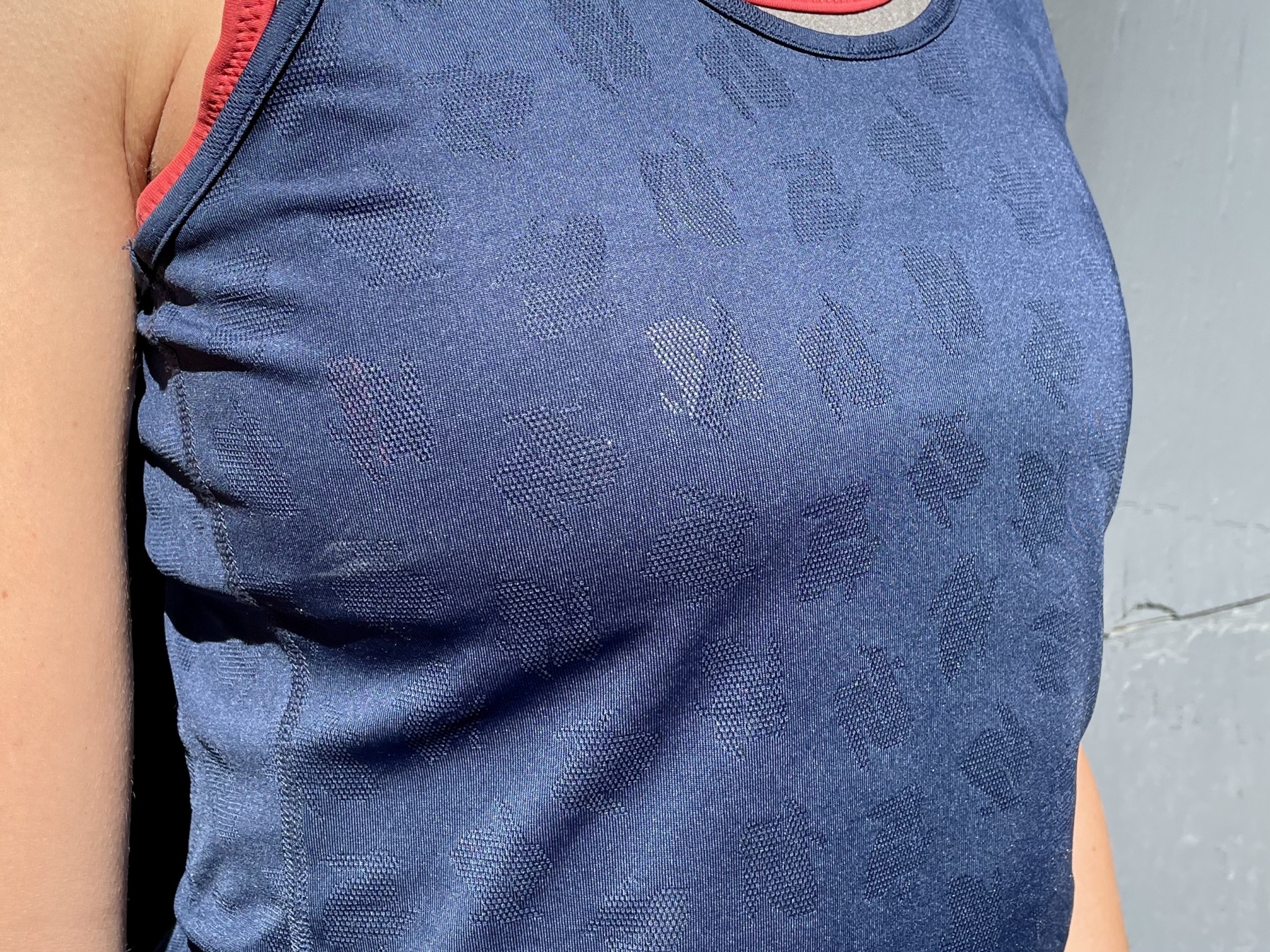 The polyester and spandex of the Bunny Hop make it less soft to the touch when compared to its competition. However, the less-silky body is well-designed as a basic and comfortable running tank. It's constructed with plain non-bothersome seams and with less stretch than other options, but we never had any trouble with chafing while we were running. That said, if you are someone who chafes under your arms, you might not like the sleeveless construction.