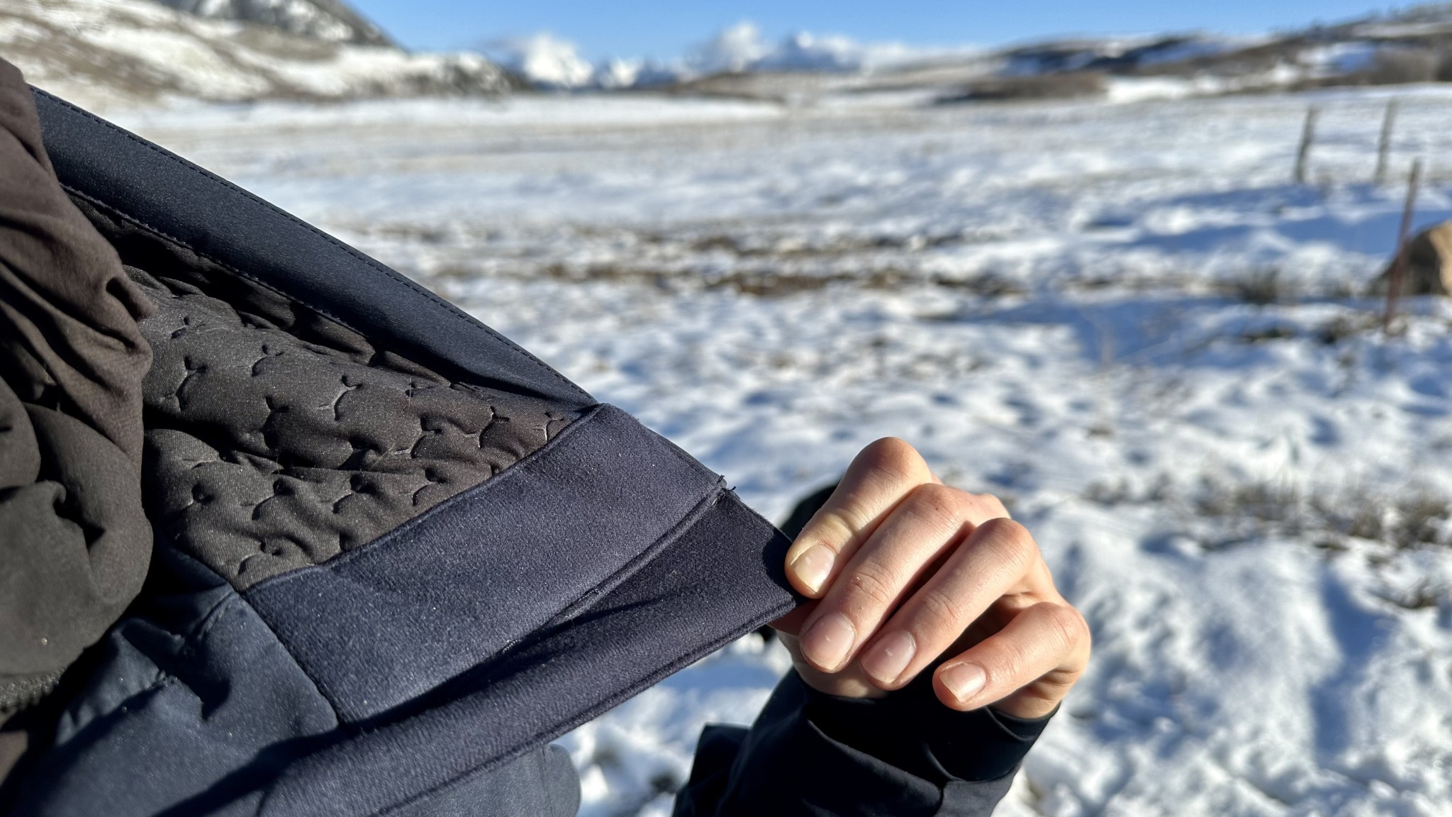 The ventilation features on the Alphelia leave something to be desired. We did not find the mesh-lined pit zips to be very effective at increasing airflow — we think they would be more effective if they were unlined and a little wider. The benefit of keeping snow out is minimal compared to the benefit of a completely open vent. We also did not notice the perforated material in the upper back wicking away heat or moisture when we were working hard. The Alphelia has fairly typical breathability for an insulated jacket, but the compressed insulation tends to feel a little dense when combined with other layers. The breathability of this jacket performs best when paired with thin base layers.