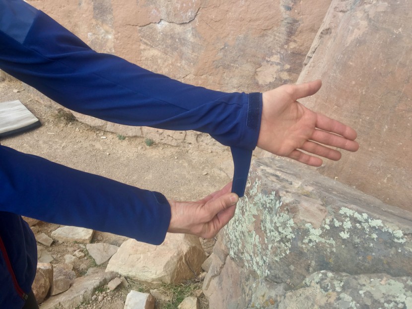 Sadly, one of the best aspects of the ROM, the combination of breathable polyester and weather-resistant GORE fabrics, proved restrictive in the shoulders. This is because the GORE fabric (like many fabrics) stretches in one direction (up and down) but not the other (side-to-side). This translates into the shoulders feeling restrictive and tighter than they would have, had the fabric been oriented in the other direction. Once our reviewer was able to test the appropriate size, the shoulders were much more comfortable, while the rest of the jacket was then too big. Under a harness or over a jacket, this isn't an issue, but when the ROM was worn over a Patagonia R1, it looked/felt a little baggy. The hood fits comfortably over a climbing helmet to offer some additional weather protection should s!&@ hit the proverbial fan, and the hem-line stays put while climbing, something our reviewers consider essential for a climbing jacket.