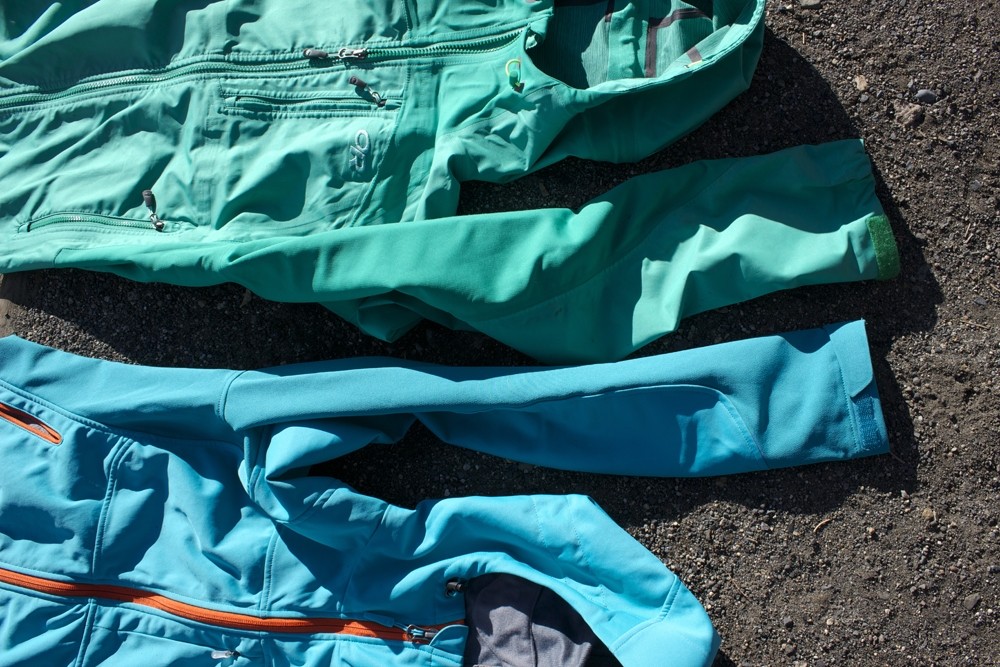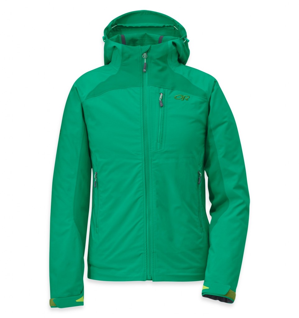 A hybrid softshell combining a highly weather resistant shell material with thin, breathable underarm panels, the OR Enchainment is a specialized piece most conducive to ice climbing and backcountry skiing.