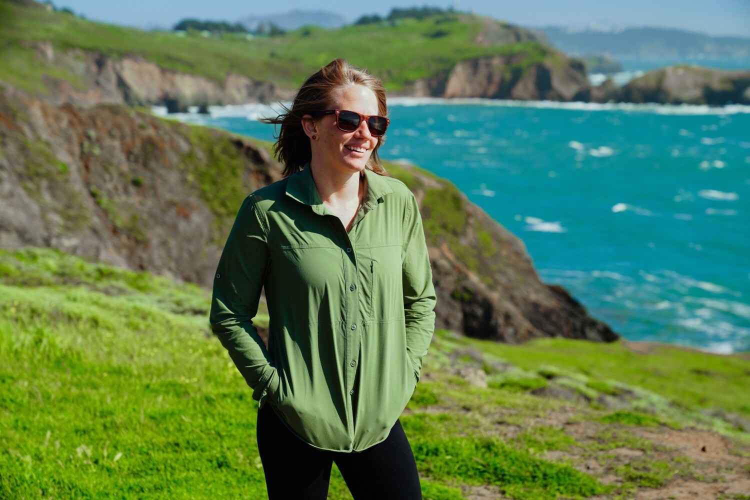 The Boreaz has a hidden zippered chest pocket and a reinforced back vent. What really makes this shirt unique though, are the HUGE hip pockets. The openings are hidden on the side seams of this shirt and the pockets themselves literally take up the whole front of the shirt. They're more than big enough to be a temporary phone pocket, hold tissues for the day, or even store a bunch of snacks in. They're also a great feature for starting your day in the cool early morning, as you can easily stick your hands inside to keep warm.