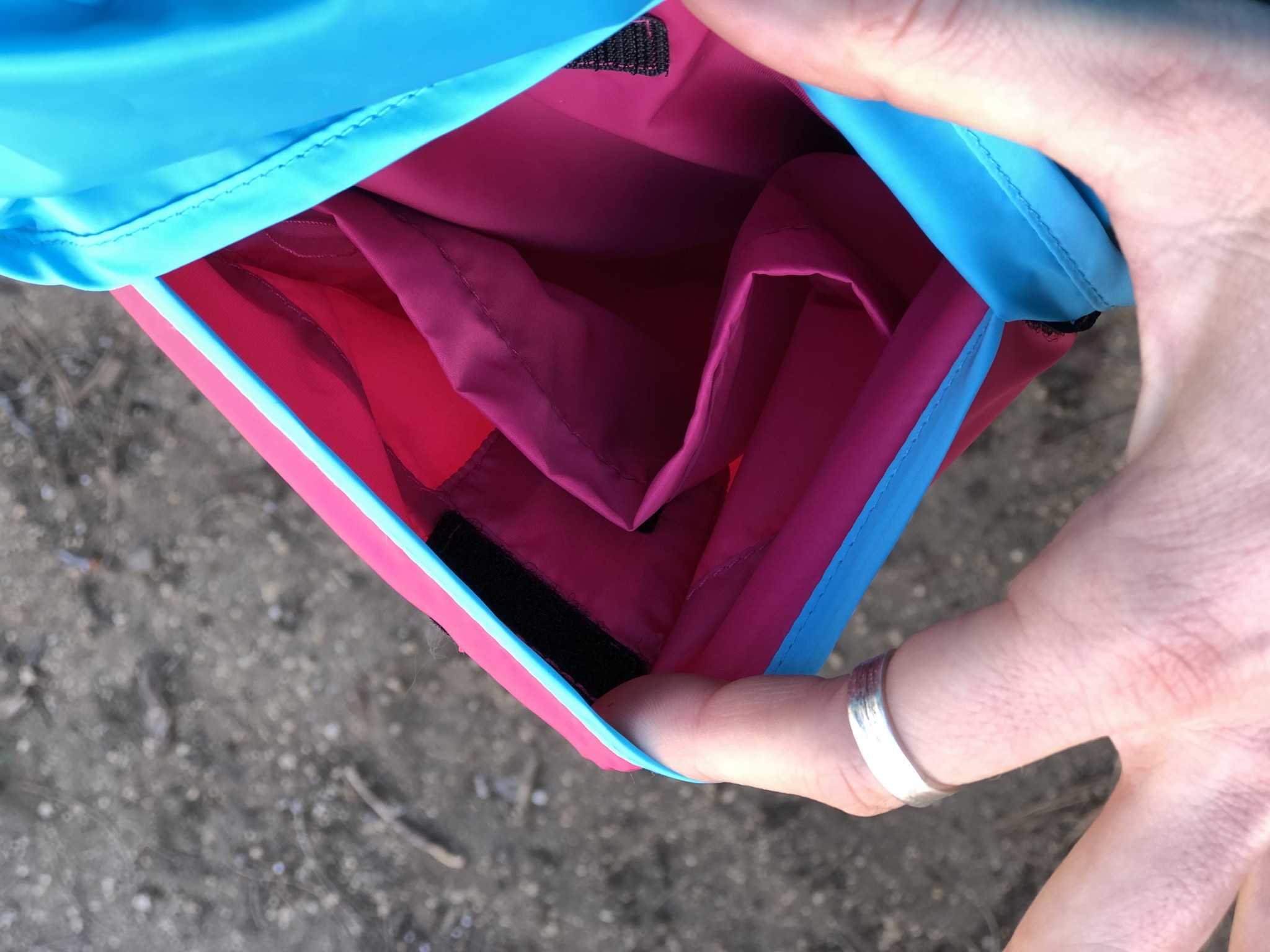 The Teca is one of the lighter and more packable jackets in our review. At 4.1 ounces, you can easily throw this in your pack and not notice the weight. The problem that our reviewers have with its packability is its Velcro closure system and polyester harness clip loop. Both of these systems are prone to failure, as the Velcro can get snagged on a branch and pop open, and the polyester loop is not sturdy enough to trust hanging your jacket on — especially if it's your only layer.