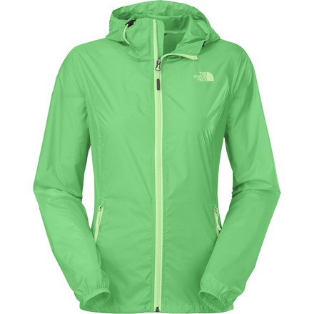 The North Face Cyclone Hoodie — Women's is made of 40D 100% nylon fabric with a DWR finish. It has elastic cuffs and a partial elastic hem. It has two outside zippered hand pockets and two internal chest pockets, and comes in an impressive array of eleven colors. It stows into itself and weighs 4.94 ounces (140 g).