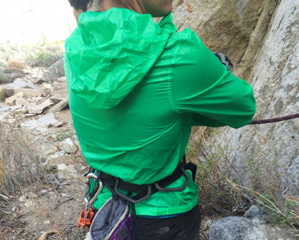 This jacket is excellent at keeping the wind off your back and the cold, damp moisture off your skin in cooler climates. The bomb proof fabric protects you from the wind and the DWR coating repels water. The combination of adjustable hood, full front zipper and elastic cuffs lets you use this wind breaker for mountaineering, cycling, bouldering, rock climbing, hiking, travel and cross country skiing. Given how water resistant and lightweight it is, this jacket is convenient to tote along with you on any adventure, unless it involves hot and humid weather. It is too windproof for that atmosphere and it doesn't allow sufficient breathability unless unzipped in those conditions.