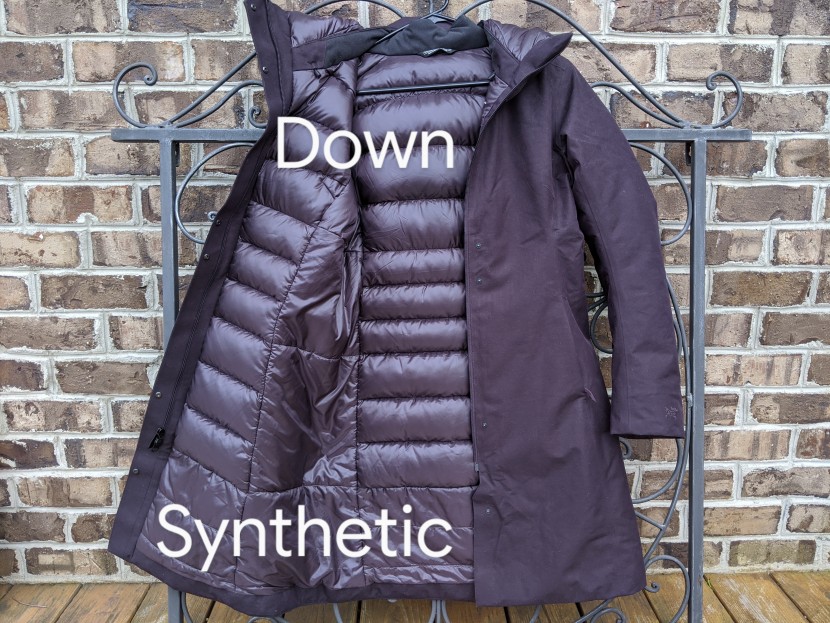 The logic behind the design makes sense. Down loses loft and heat when wet, even from sweat. Synthetic insulation does not, and it doesn't usually trap as much heat as down. Arc'teryx calls this combination Down Composite Mapping. The synthetic insulation in the side panels and bottom eight inches of the hem is thinner than the down portions. While our core never feels cold in this coat, our arms do sometimes catch a chill in frigid temps. Still, we stayed warm when standing around in windy, 17-degree weather.