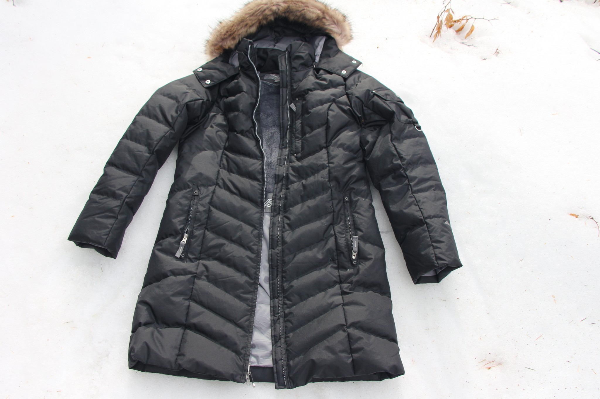 The chevron baffling and shiny fabric is similar to several very fashionable jackets we tested. While their light and soft polyester fabric have a subtle drape, the Sun Valley's stiff outer fabric stands straight up and down. The effect isn't as appealing, but the slim cut does flatter. This jacket isn't bulky and has a pleasing line, and the faux fur ruff is among the prettiest we tested.