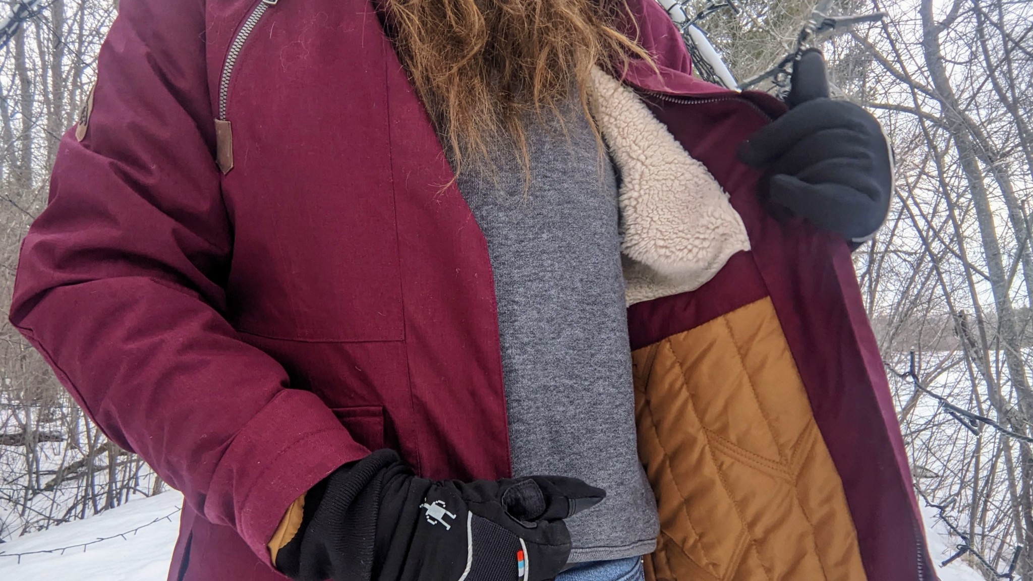 One of our few comfort complaints with this coat is the collar. It's on the tight side, and when you zip it all the way up, the zipper juts into the bottom of the chin. The zipper and collar are padded in microfleece, but that doesn't make this less annoying. The effect is even worse when the hood is on since it holds the zipper against your chin. We don't like the hand-warming pockets either. They are low and are not angled to welcome your hand at a natural angle. They run straight up and down the jacket, forcing your wrist to bend uncomfortably. They also aren't very deep and are uninsulated, which is not a great combination.