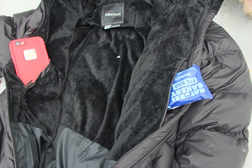 The exterior pockets sandwich your hands in microfleece, and it's terrific. They are also a comfortable size and height for your hands, which is, sadly, not a given in every jacket we tested. You can even sit down with a phone or wallet in them without much discomfort. The torso, collar, and cuffs are also lined with microfleece and offer soft support that helps us face cold and stormy weather.