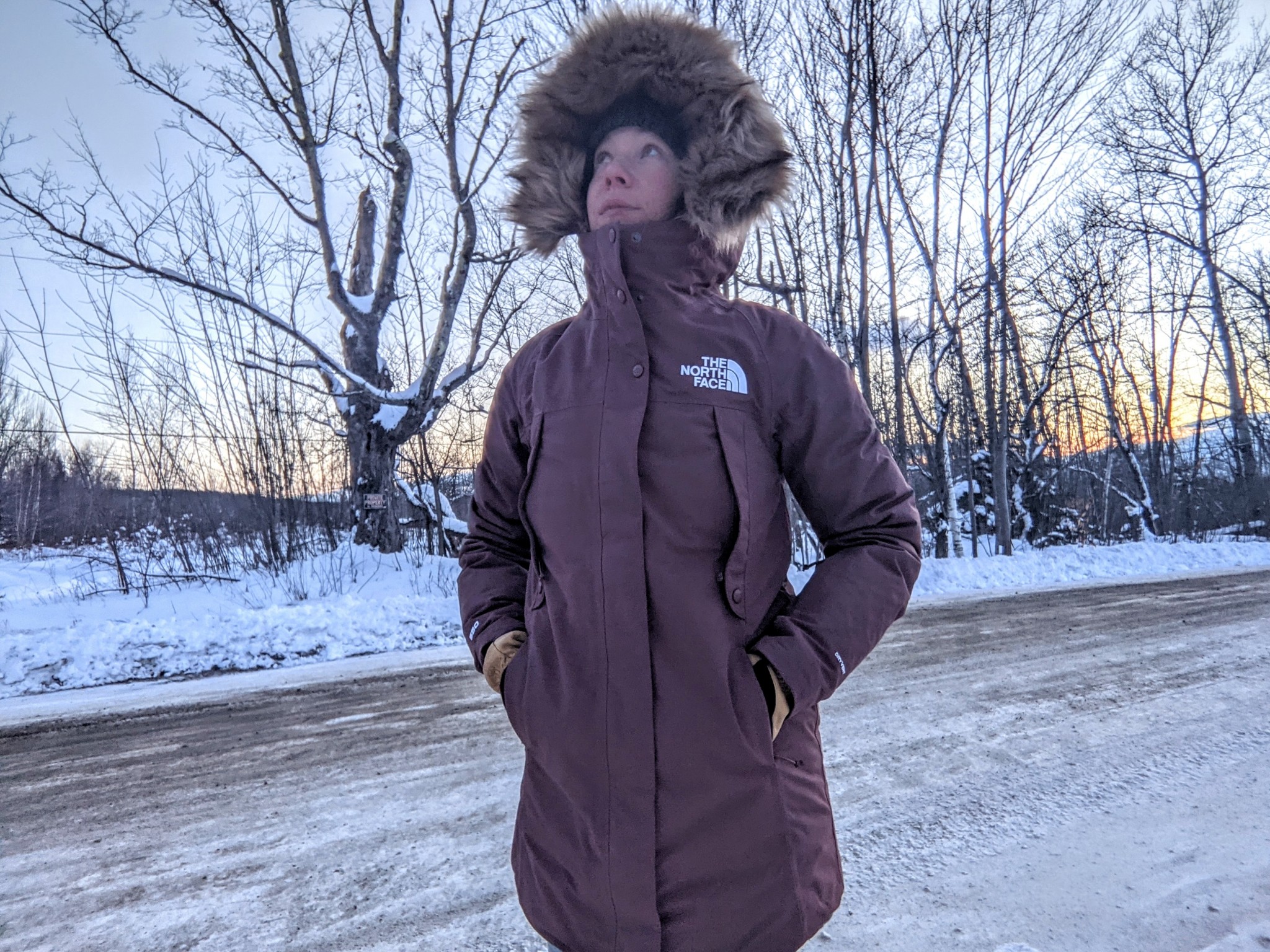 This parka is on the heavy side, but it does provide internal backpack straps so you can walk around hands-free if you pop into a store. Its pockets are lined with soft microfleece but aren't insulated enough to keep your hands very warm.