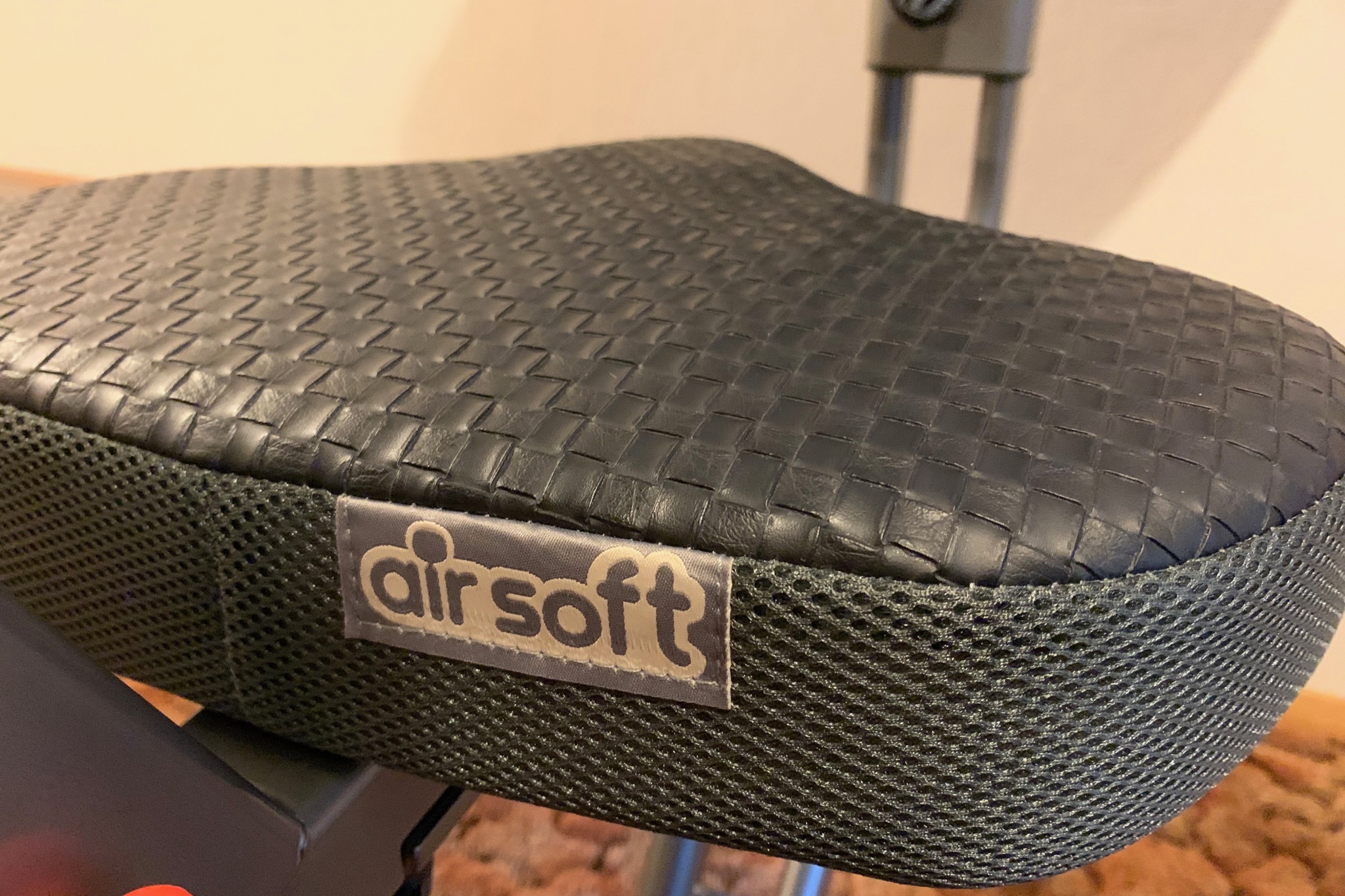 The Exerwork Desk Bike has a large cushioned seat that is 2.5 inches thick and 15 inches wide. The foam padding is soft, and the size and shape of the chair should work well for most users. The Airsoft seat is claimed to have “aerodynamic healthcare technology” that allows air to breathe through the fabric to help keep you cooler for longer. The seat's position is highly adjustable, and it has both seat height and fore and aft adjustments. The 1.3" thick foam backrest provides adequate back support and has two positions. This bike's seat adjustability should allow for a comfortable position and natural feeling leg extension for most riders within the recommended 5'1" to 6'3" height range. Our primary tester is 6' tall and has a 32" inseam. Despite being well within the height range, he noted that he could have used slightly more adjustment to achieve the perfect leg extension in his pedal stroke.