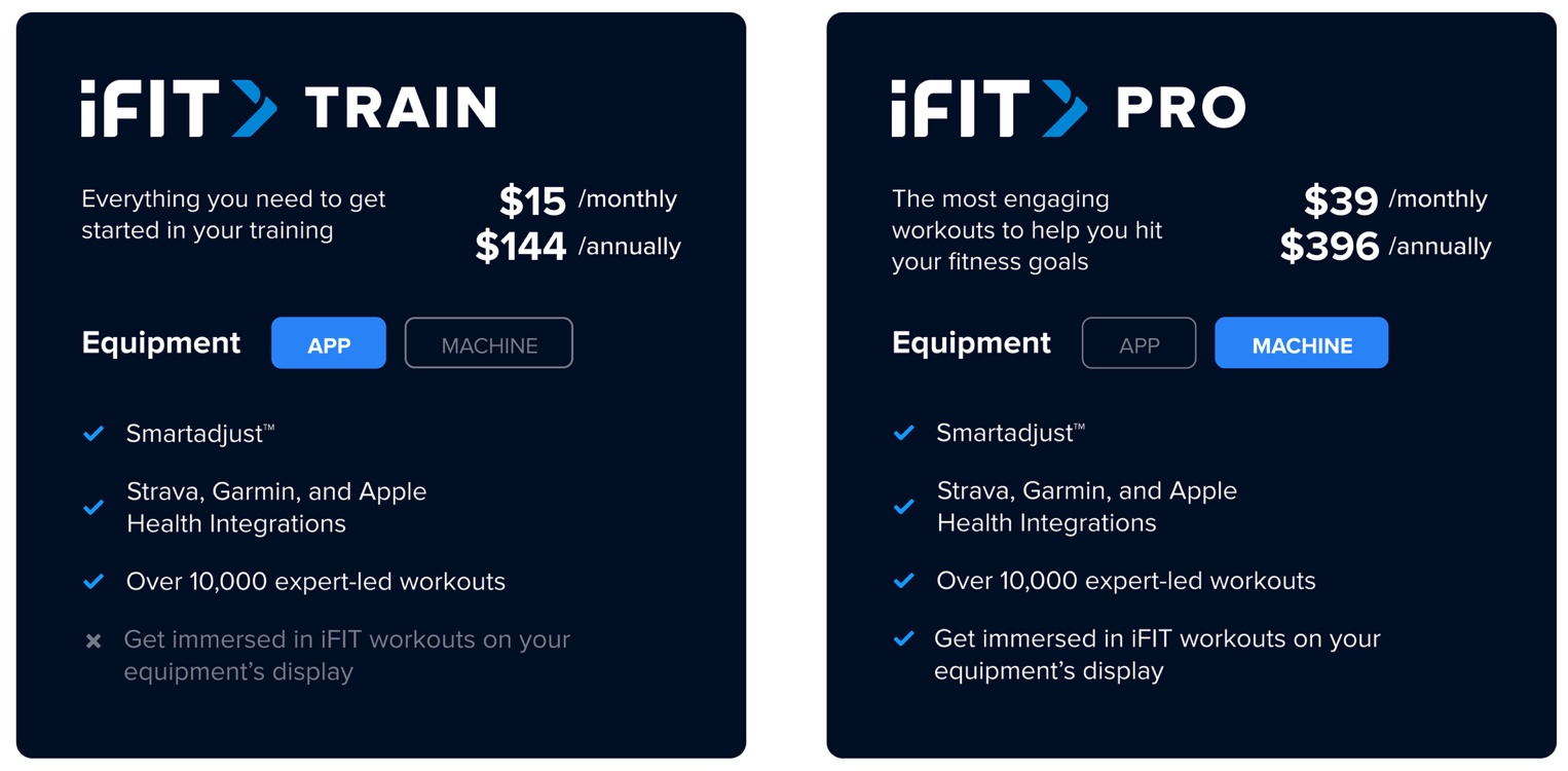 | Companion App | iFit (subscription required) |
