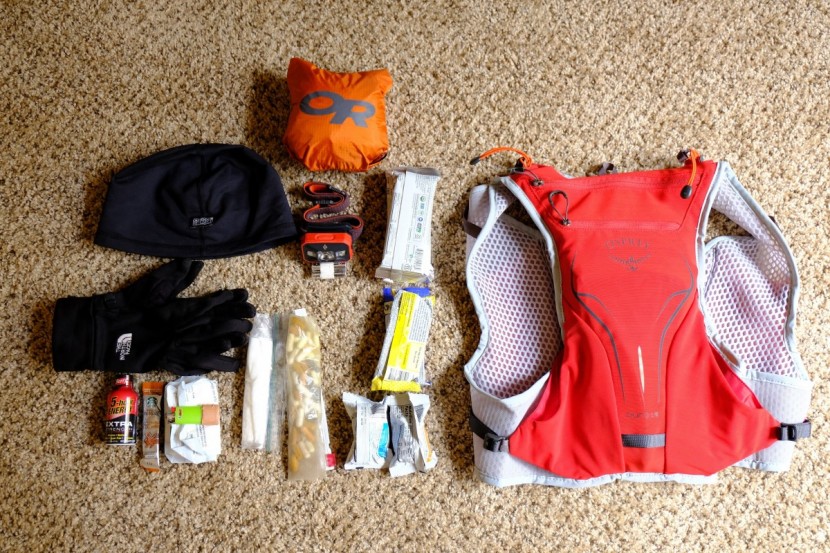 The Duro offers a ton of organization potential with its numerous zippered pockets but overall lacks the necessary storage for bigger days out on the trail. At 15.8 ounces, it is among the heaviest vests we tested, while carrying the least amount of gear. For our volume to weight ratio equation, the Duro scores alongside the women's Dyna at the very bottom of the field. As with all packs we tested, we put our base kit together with basic items and crammed it into the Duro to see if we had any room to spare — and this just about maxed out the bag. While there isn't a lot of space for more than this, we could typically get out for about half a day with this amount of food and supplies given decent weather and not needing any other layers.