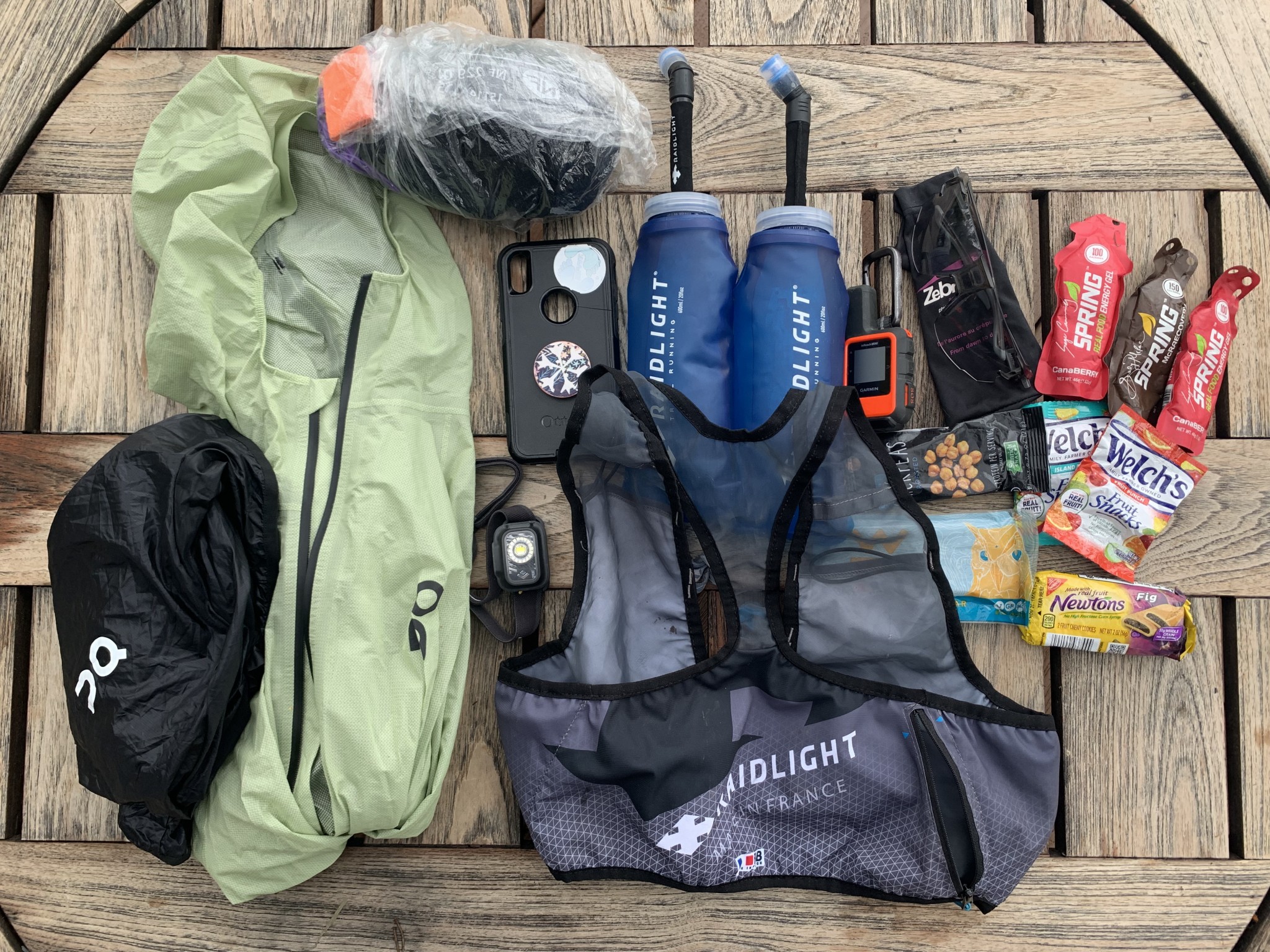 This vest is trimmed down for racing at 6.6 ounces (with the soft flasks), but we found it to be in a league of its own. It is closer in weight to many hip belts but can carry nearly as much as a proper hydration vest meant for ultras. What's more, the positioning of the gear is excellent. Unlike hip belts that can mess with the interface of your shorts and shirt and bounce with every stride, the positioning of the gear in this vest is right at the taper of the ribcage, keeping everything snug.