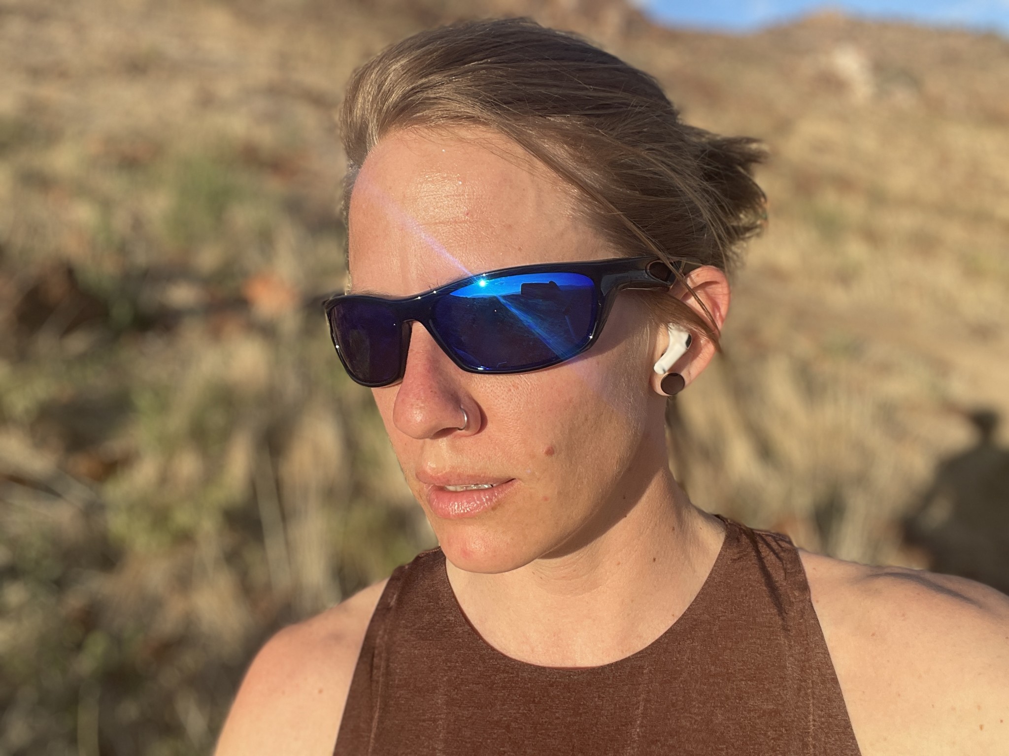 The backs of the lenses are exceptionally reflective though. Even with light coming through the fronts, we could clearly see the reflections of our own faces in these lenses, which is highly distracting and difficult to look through. The mirror coating also seems to be perpetually smudged and fingerprinted from even just hair blowing across it in the breeze.