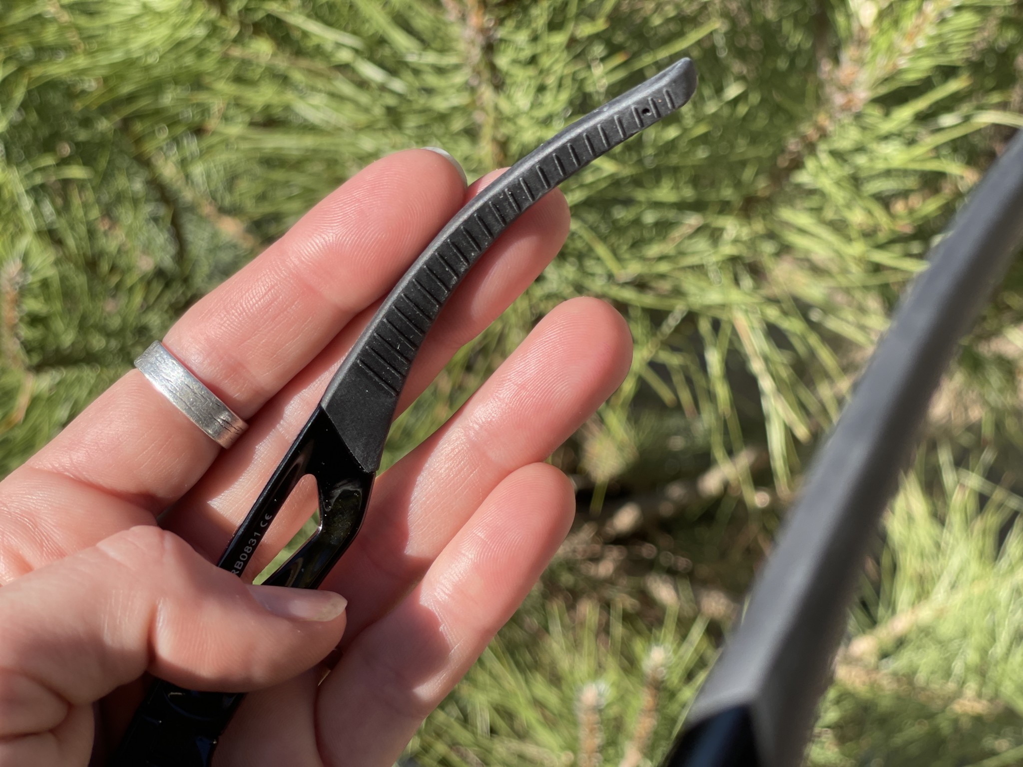 We found these not totally uncomfortable to wear, at just 25 grams, but fairly awkward. Pushed all the way up to where they're more effective causes more eyebrow sweat than almost any other model we tested while leaving a shockingly large gap underneath the lenses for light to bounce right in. The rubber nose pads and rubber back halves of the bows do help them stay in place — to a point. But the nose pads feel a bit too sticky (especially when sweaty) and the rubber arms have intense diagonal ridges all the way along their length that take away from their comfort. They also got so stuck on our skin and hair that they raised WAY off our faces when smiling.