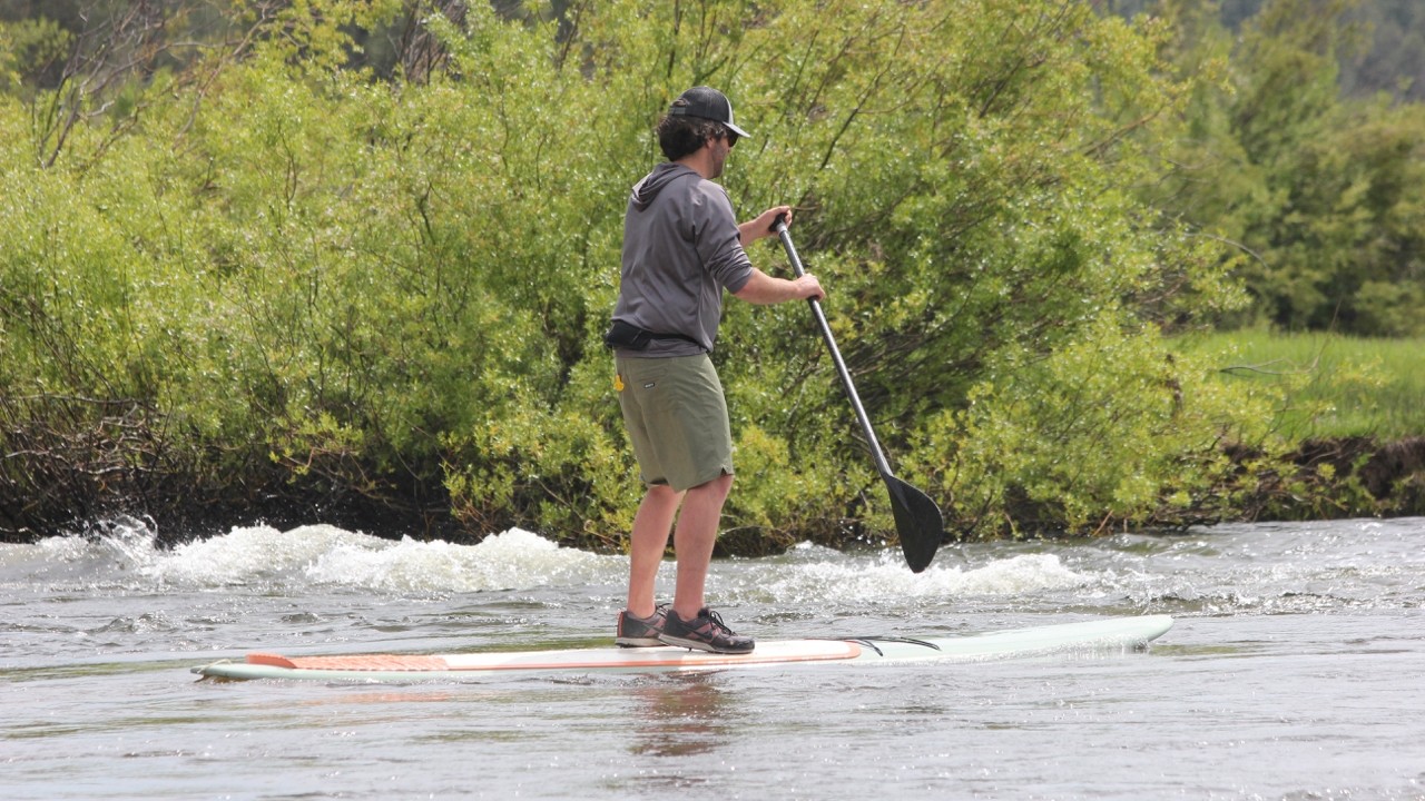 It tracks well enough that you don't need to alternate sides of the board for every paddle stroke, as long as you make sure that you are doing a J-stroke. We even took this board out on an exceptionally windy day and found that you could make decent progress upwind with substantial waves — something the completely round, flatwater boards can't come close to doing.